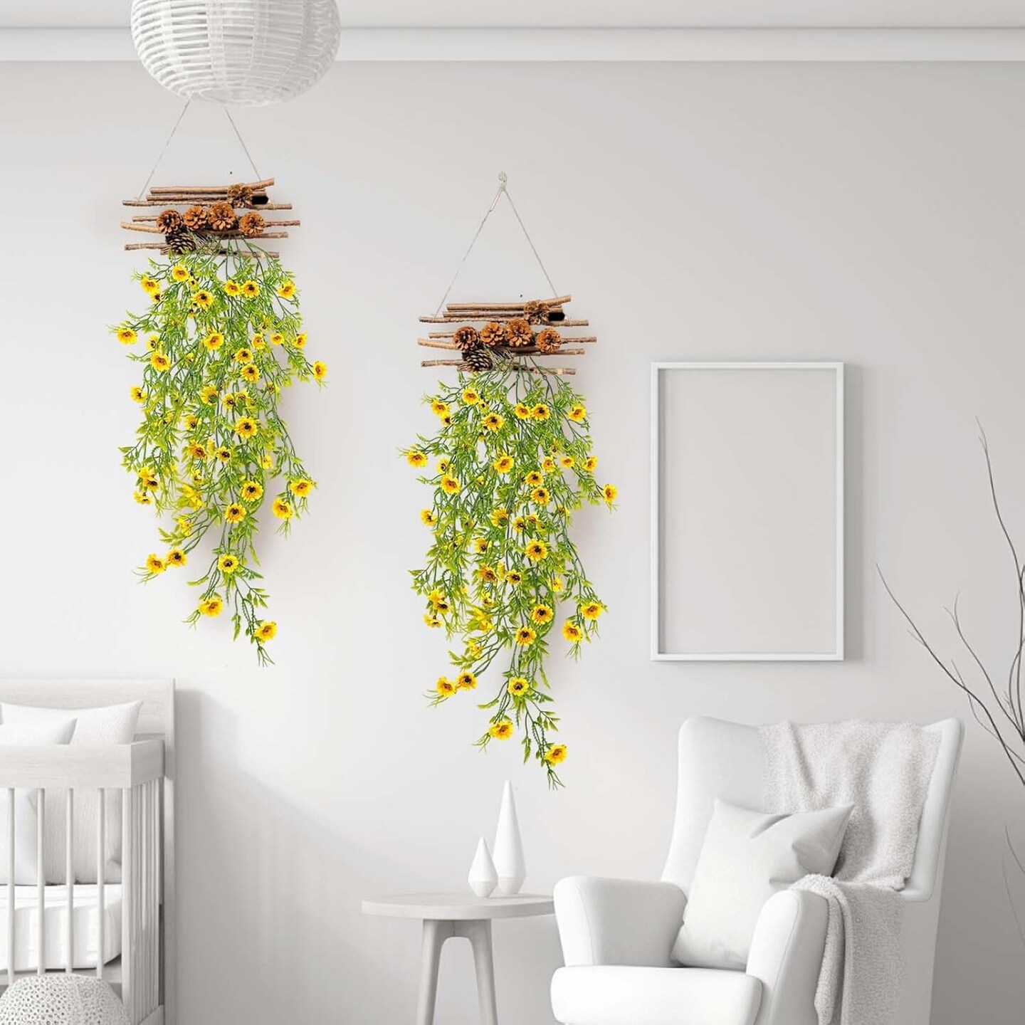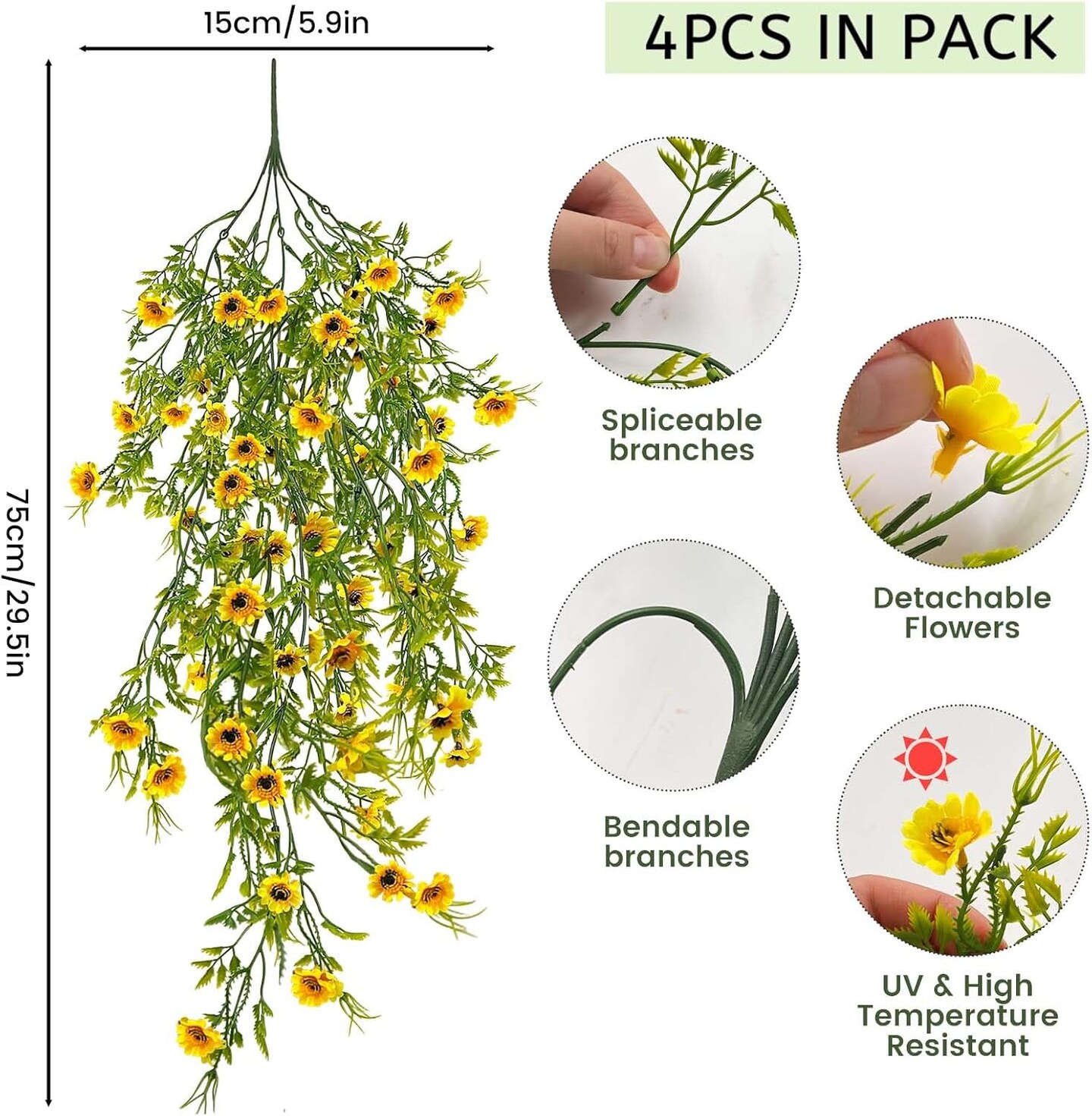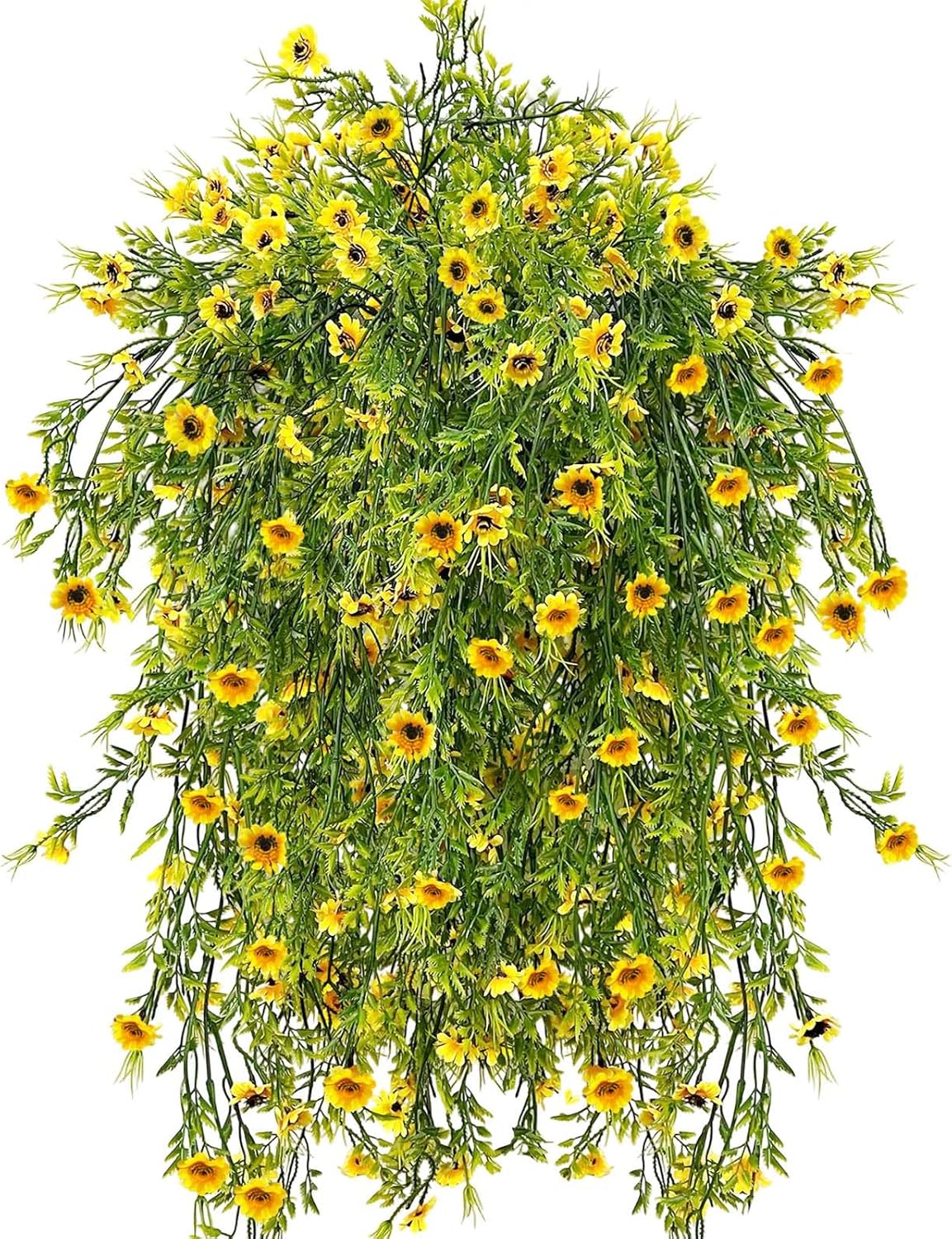 4Pack Bright Yellow Outdoor Daisy,45 Heads Hanging Faux Flowers