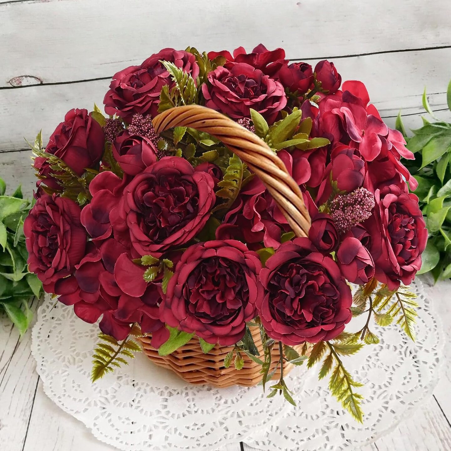 4-Pack Burgundy Artificial Peonies – Silk Fake Peony Flowers for Wedding Bouquets, Halloween Centerpieces, Table & Home Decor