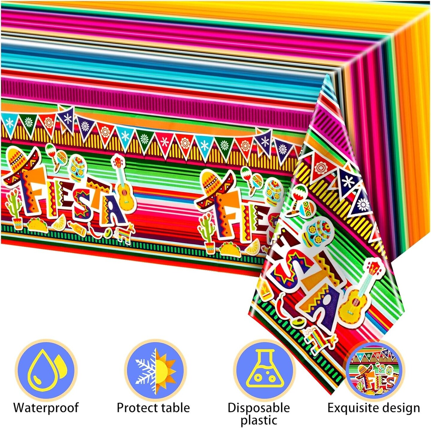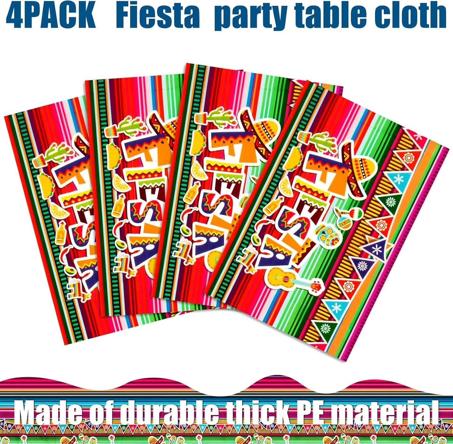 4Pack Fiesta Tablecloth, Fiesta Taco Night Birthday Party Decorations, Mexican Themed Party Supplies