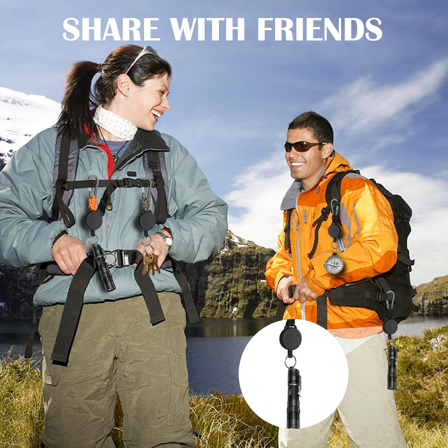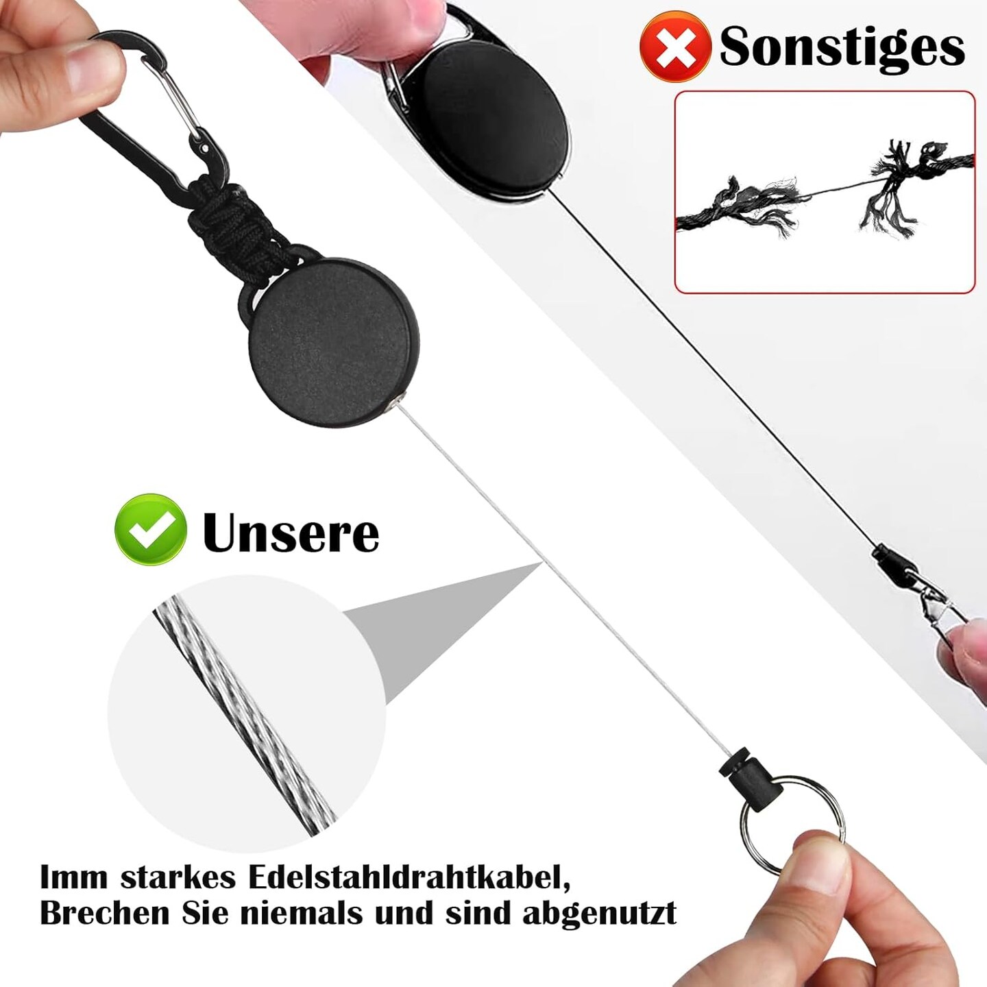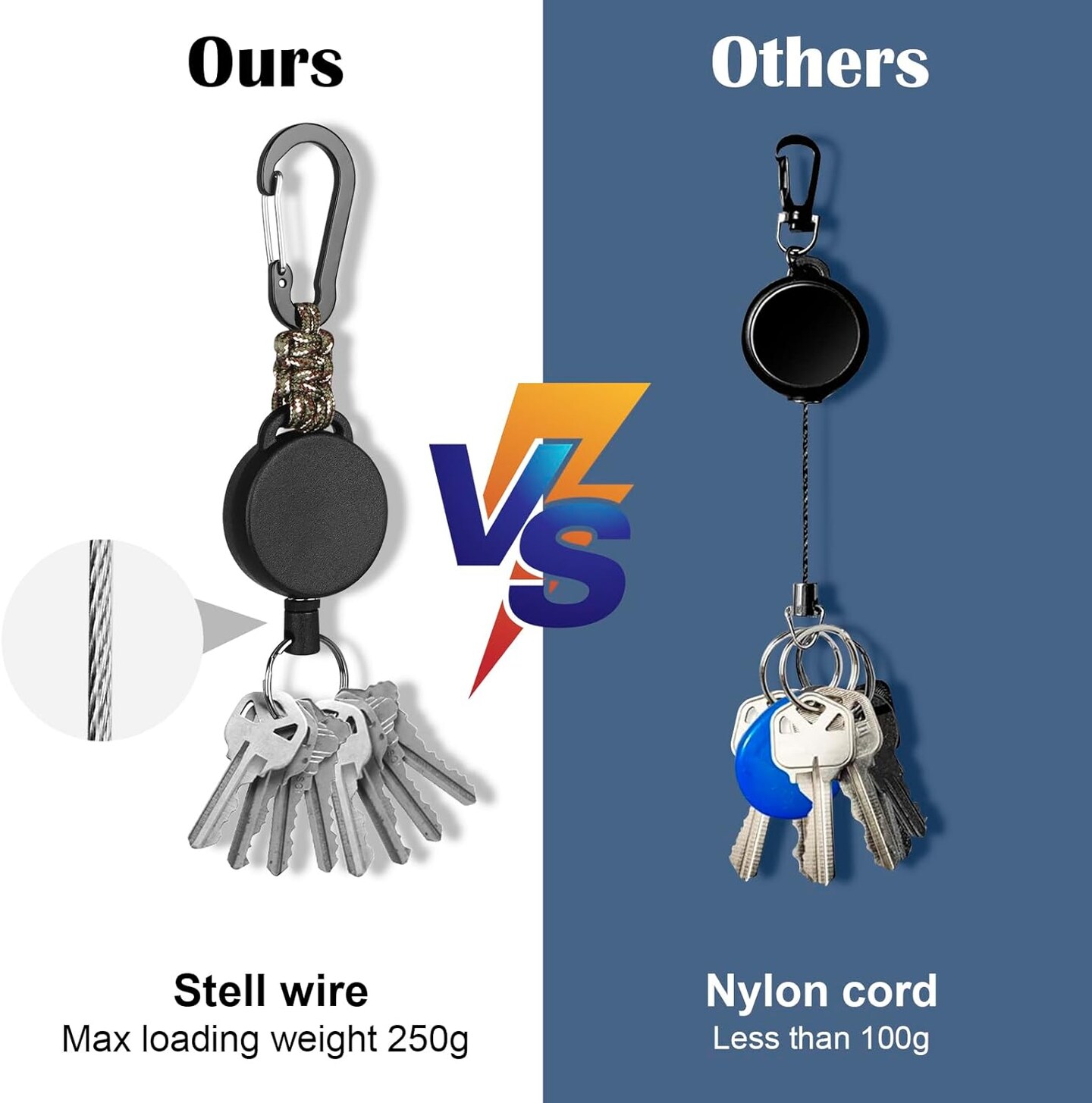 4-Pack Heavy-Duty Retractable Keychain with Carabiner – Steel Cord Badge Reel, Paracord Extendable Key Ring for Keys, ID Badges & Tools