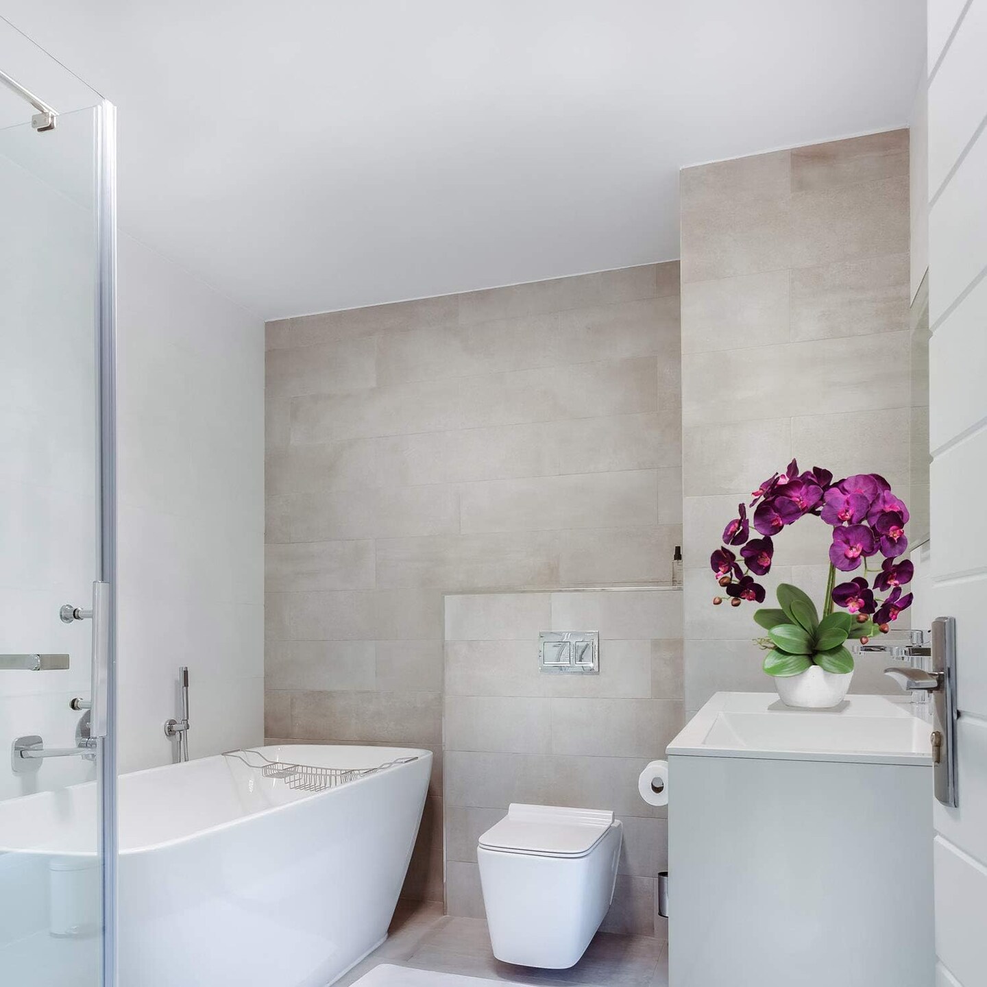 4-Pack: Lifelike Purple Orchid Stems - 33.5-Inch with 9 Realistic Silk Flowers & Green Buds - Ideal for Arrangements, Events, and Decor