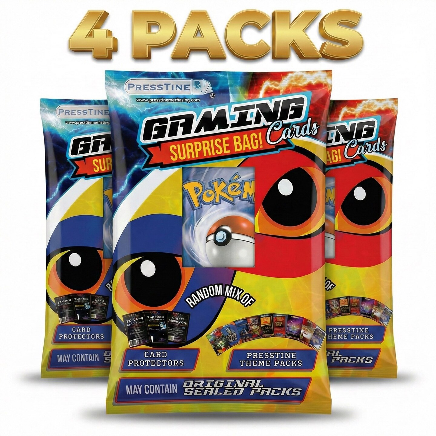 4-Pack Presstine Pokemon Surprise Bag Trading Cards Mystery Pack