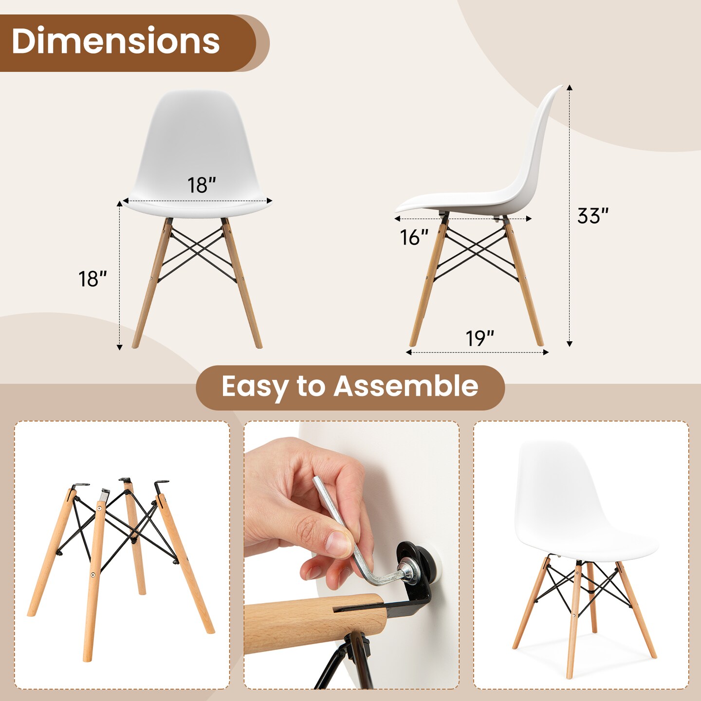 4-Pack White Armless Dining Chairs with Beech Wood Legs and Ergonomic Support Perfect for Patio