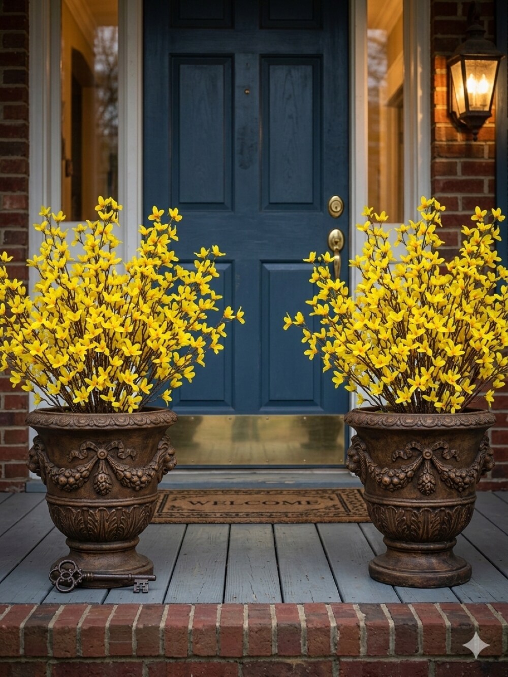 4PC 26" Artificial Forsythia Bush – Realistic Yellow Spring Flowers, Decorative Faux Floral Stem for Home, Office, and Event Arrangements