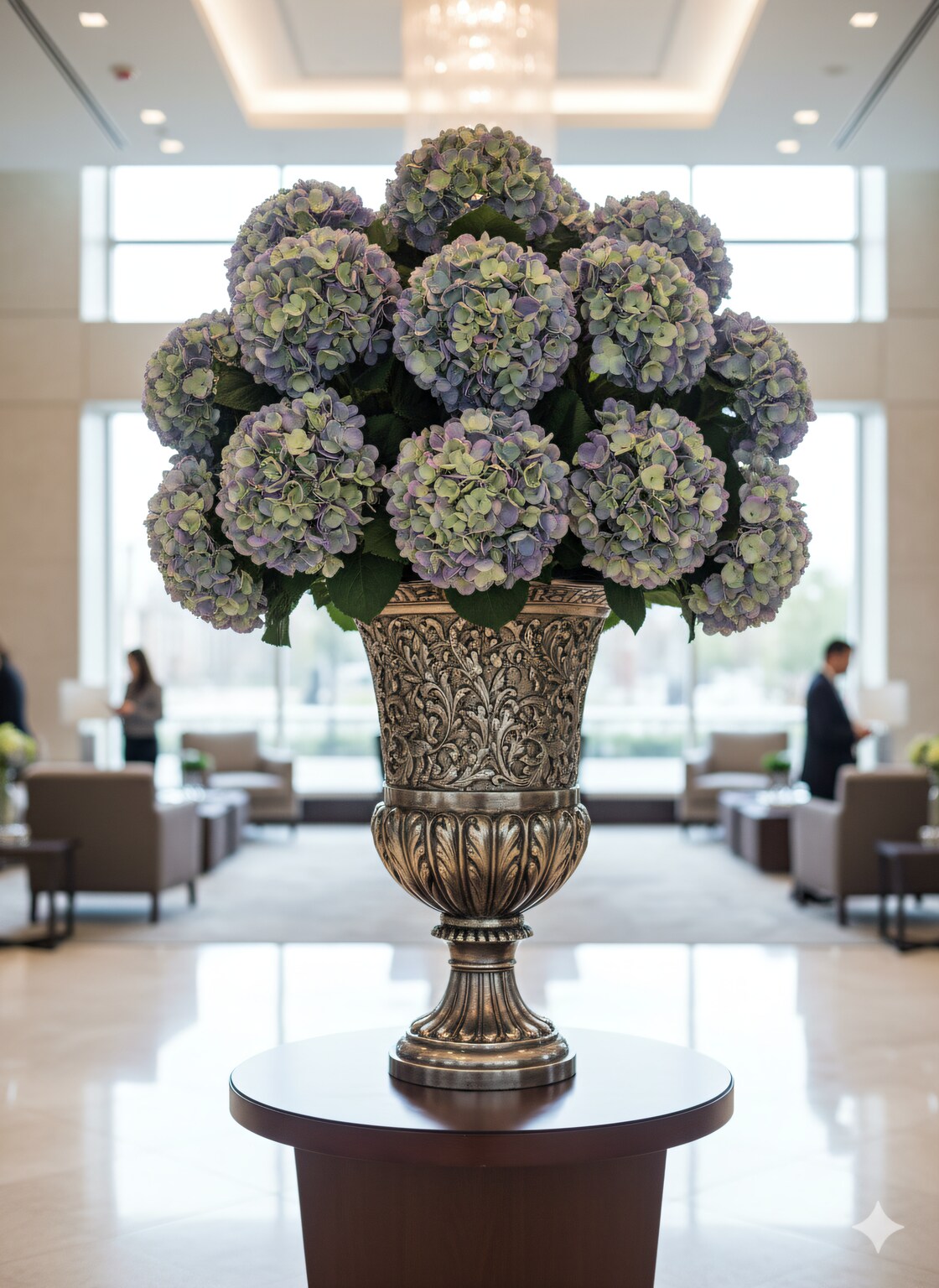 4PC Charming 18-Inch Periwinkle Hydrangea Stem Set- Enchanting 7-Inch Diameter - Perfect for Home Décor, Wedding Centerpieces, and Special Event Floral Decorations