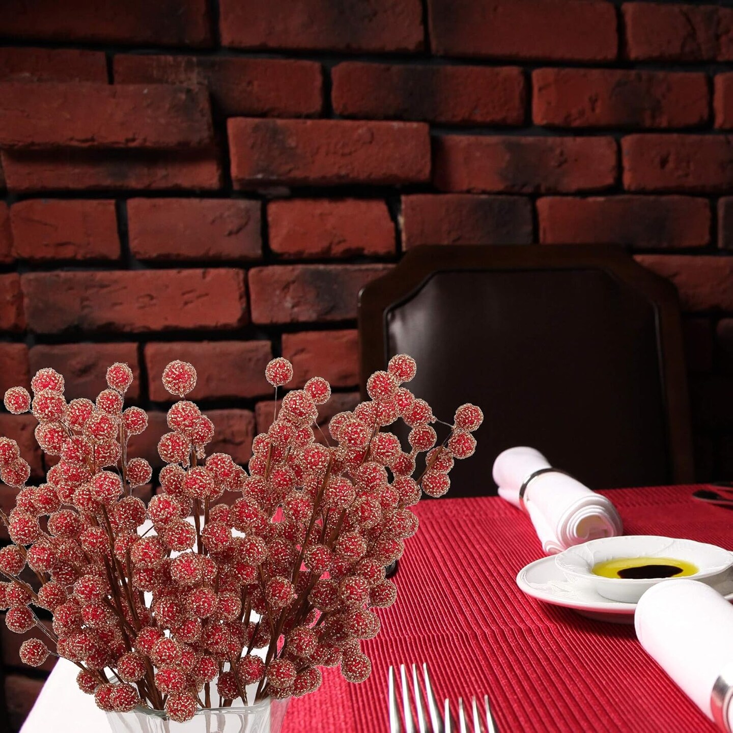 4PC Red Holly Berry Stem Picks - Decorative Wire Stem Branch Sprays