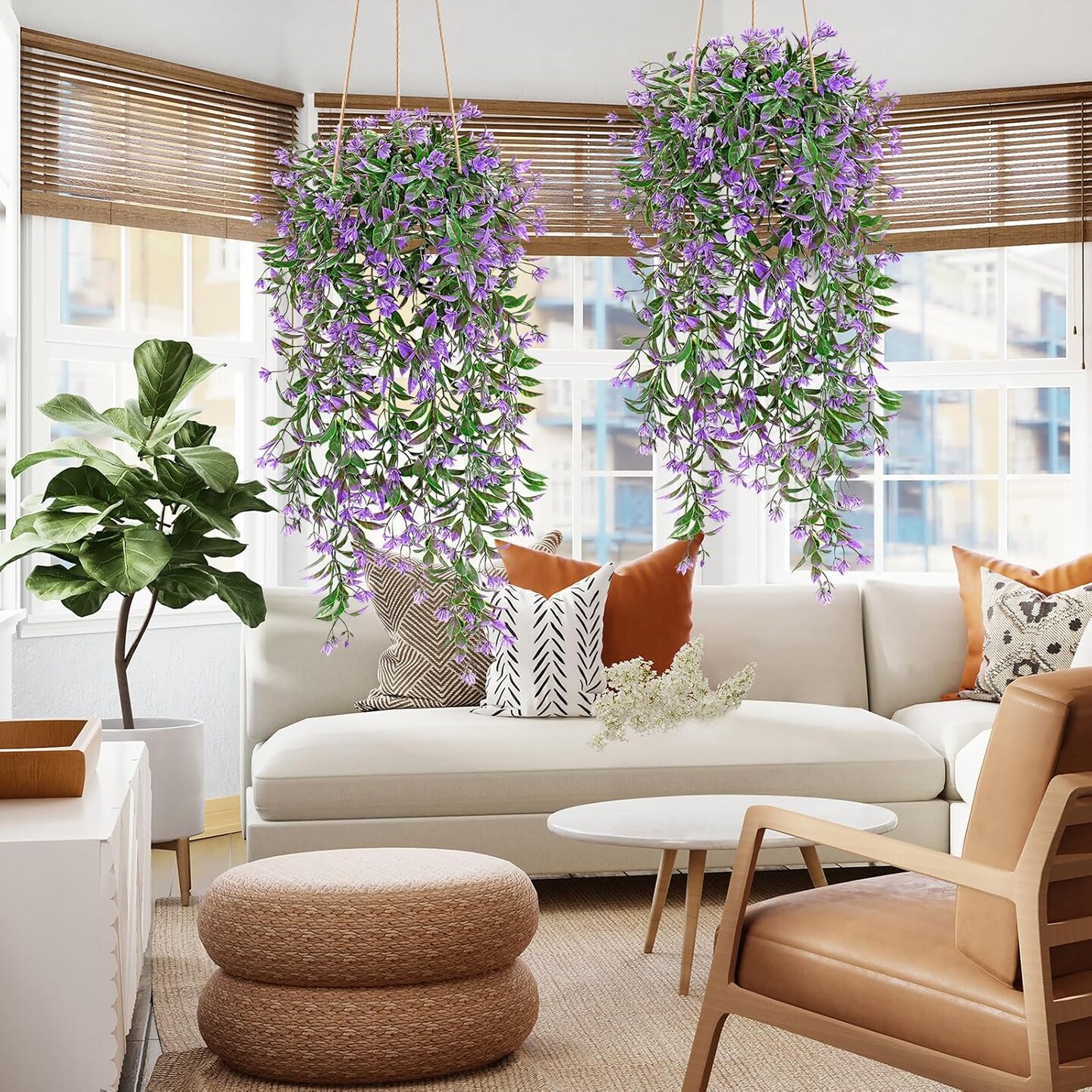 4Pcs Artificial Hanging Plants (Purple) 1"D x 1"W x 30"H