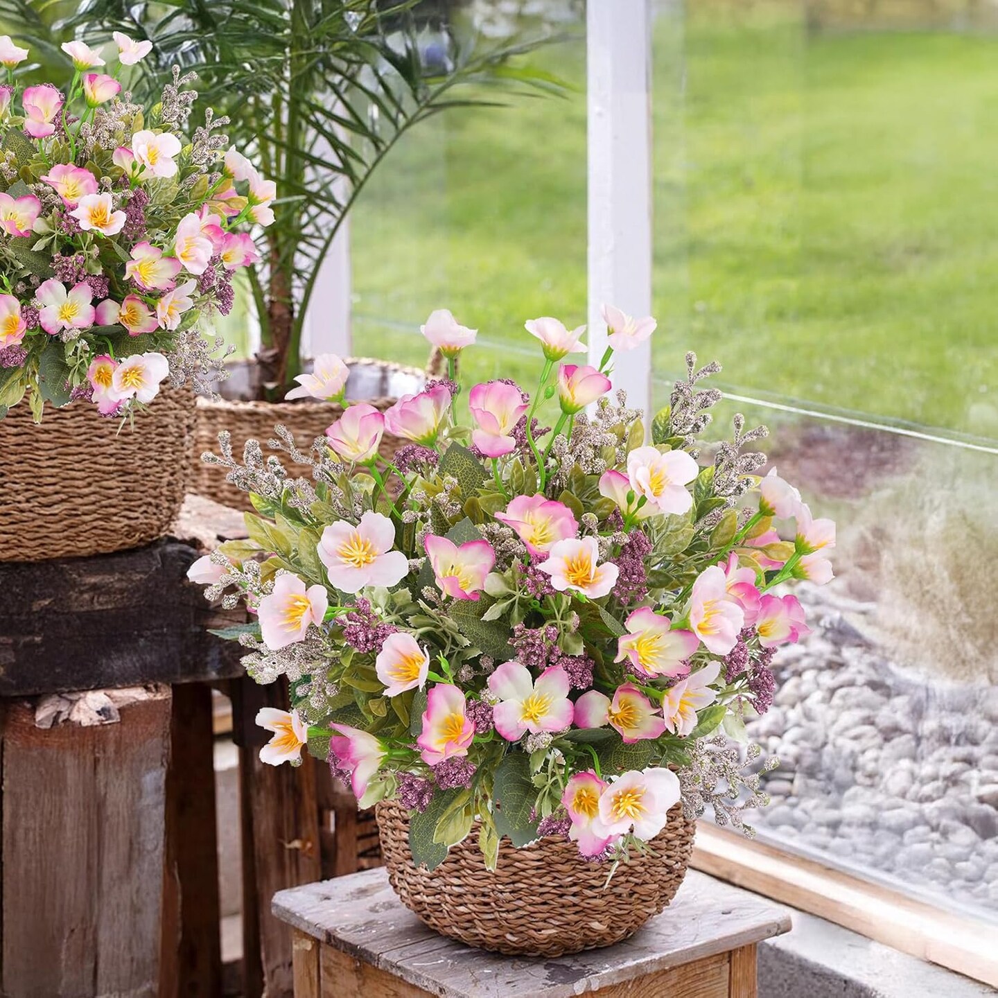 4Pcs Artificial Silk Wildflowers Bouquet (Pink)