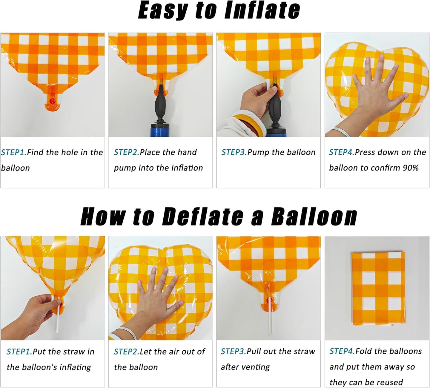 4PCS Blue Heart Balloons – 17-Inch Blue & Cream White Striped Foil Mylar Balloons for Valentine’s Day, Birthday, Wedding, Bridal, and Party Decorations (Love Checkered Blue)