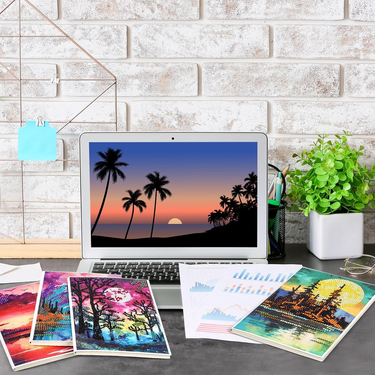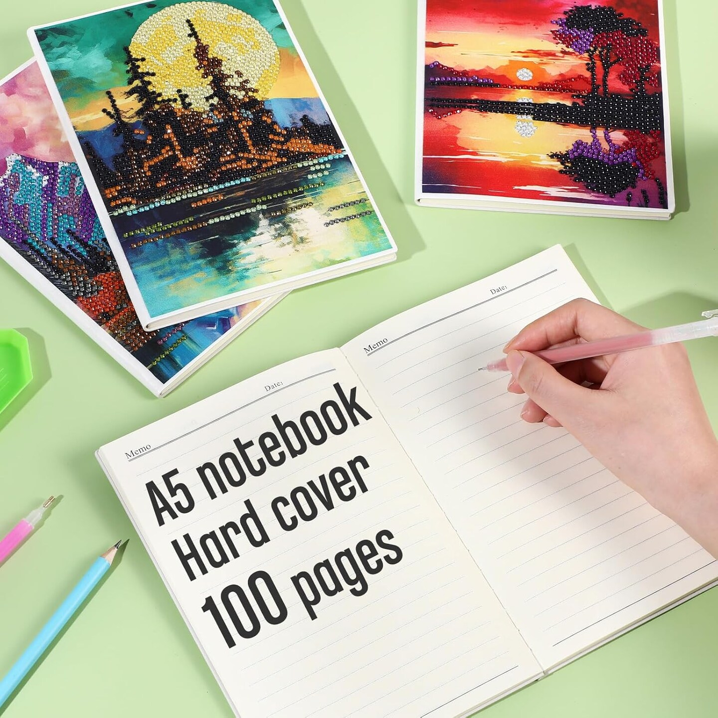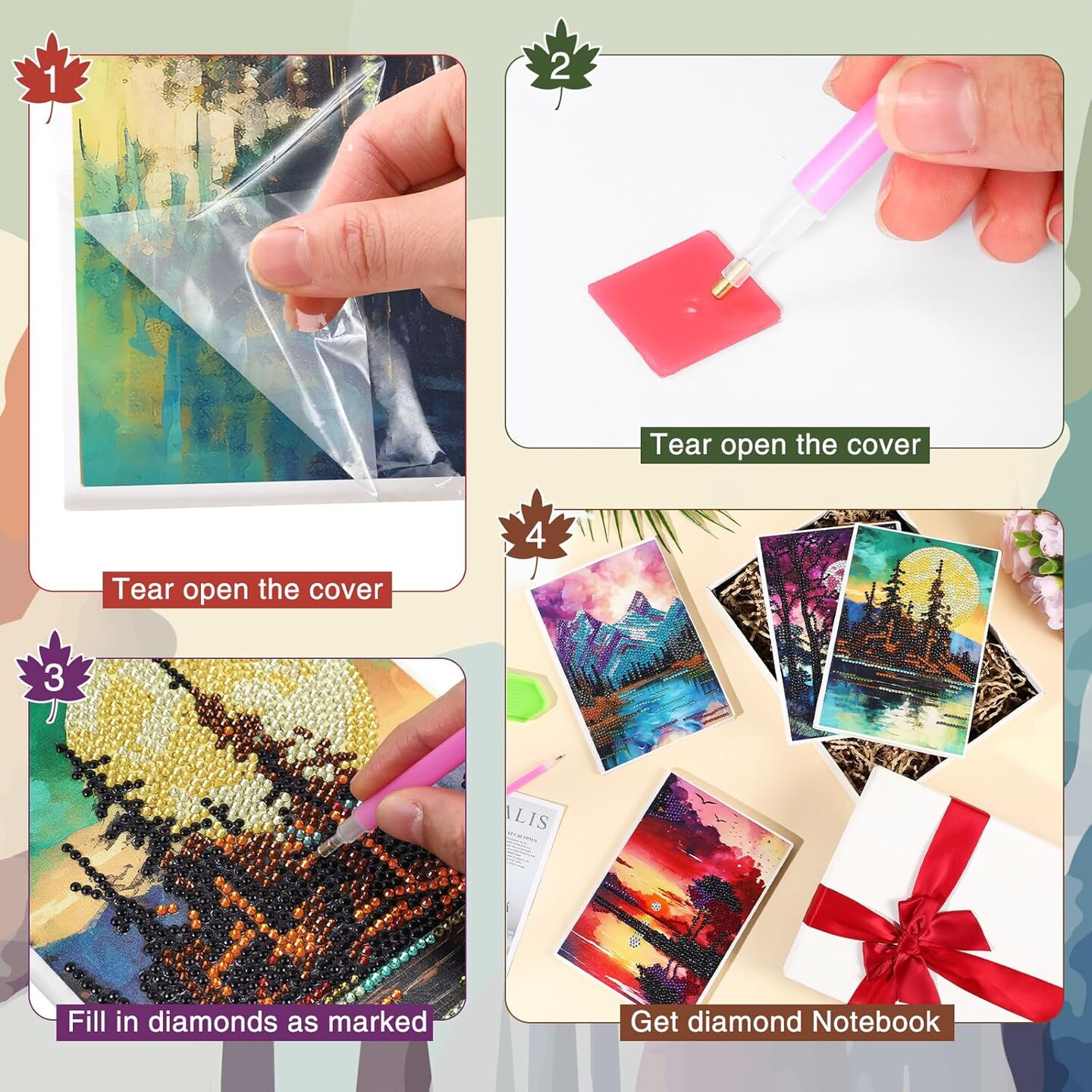 4PCS Diamond Painting Notebooks – Forest DIY Diamond Art Journals, A5 Leather Sketchbook for Adults & Beginners, Creative Christmas Gift