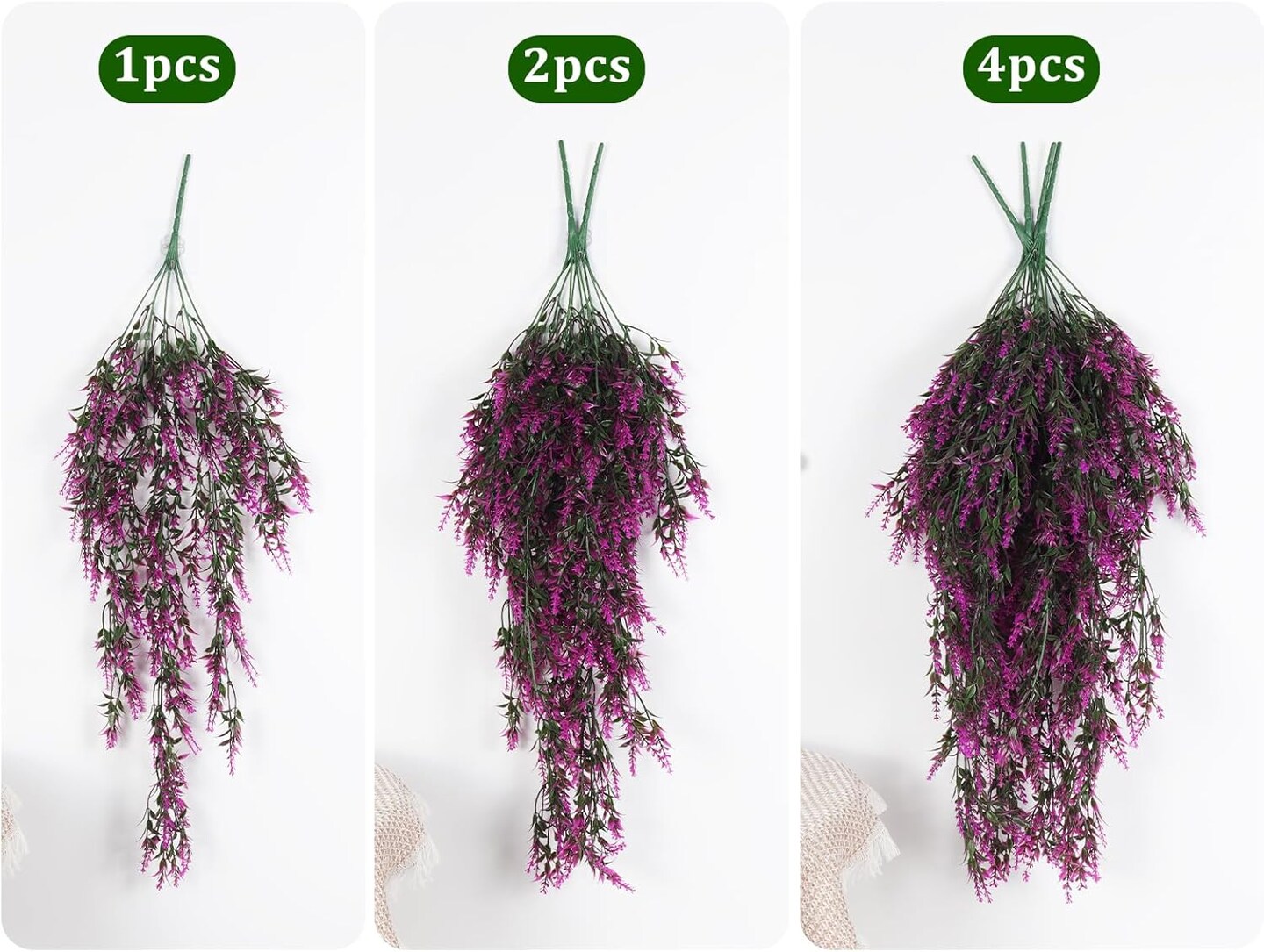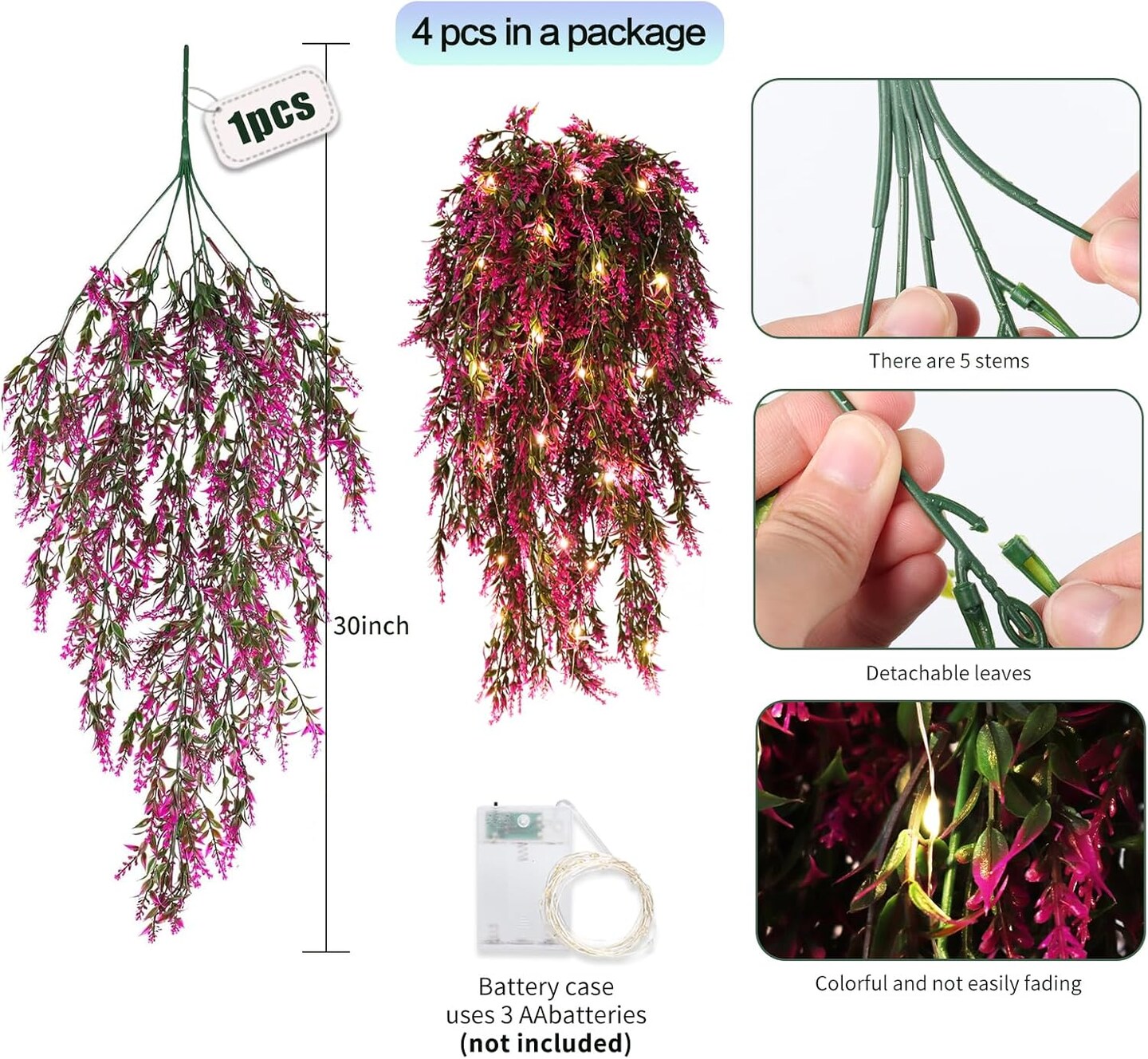 4pcs Long Fake Plant Faux Hanging Plants (Fuchsia) 2.5"D x 8"W x 30"H