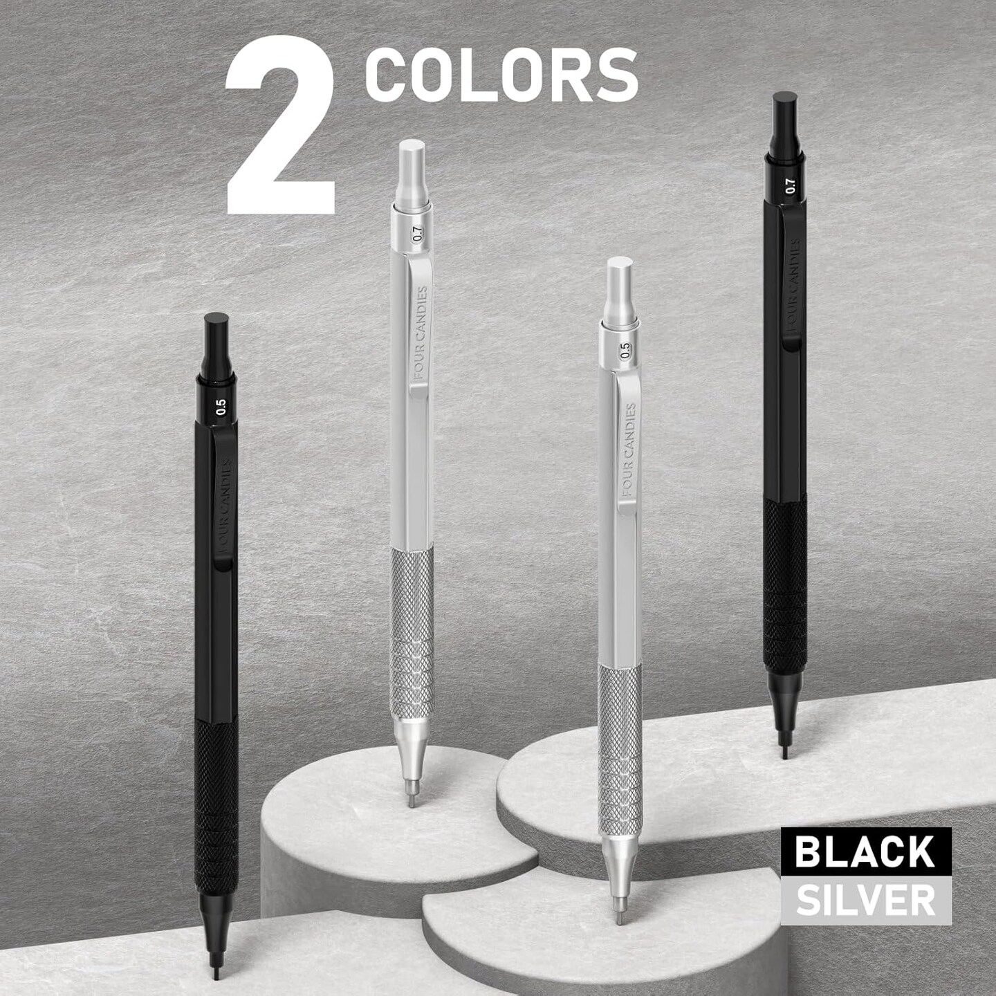 4PCS Metal Mechanical Pencils Set with Case, 0.5mm & 0.7 mm Artist Pencil with 8 Tubes (480PCS) HB Lead Refills, 3 Erasers,9 Eraser Refills For Writing Drafting, Drawing, Black&Silver