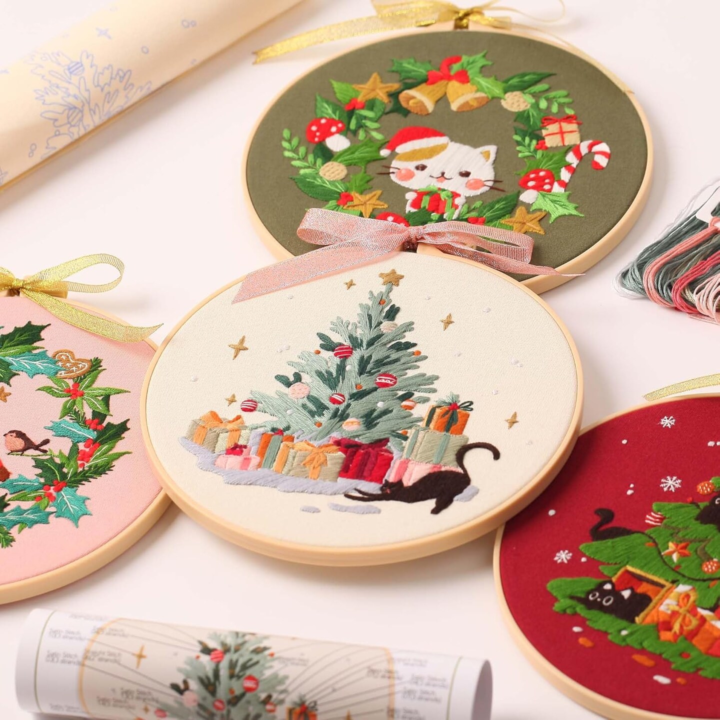 4pcs of Christmas Embroidery kit with Patterns and Instructions