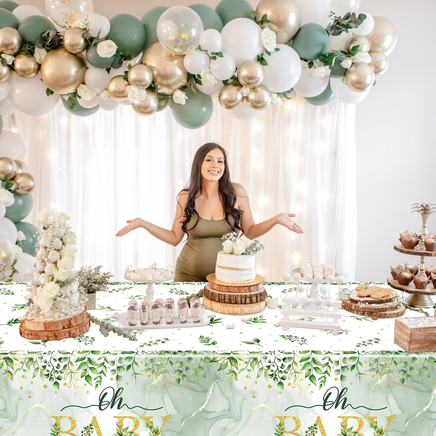 4Pcs Sage Green Baby Shower Tablecloths