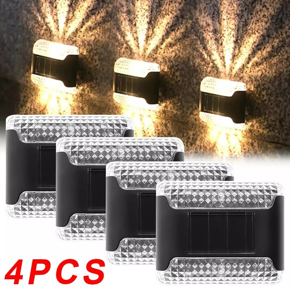4PCS Solar Led Lights Outdoor Waterproof Garden Wall Fence Yard Warm White Lamps