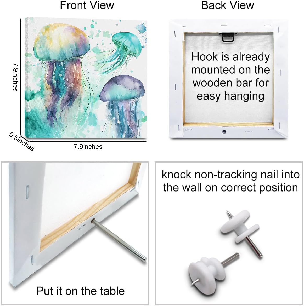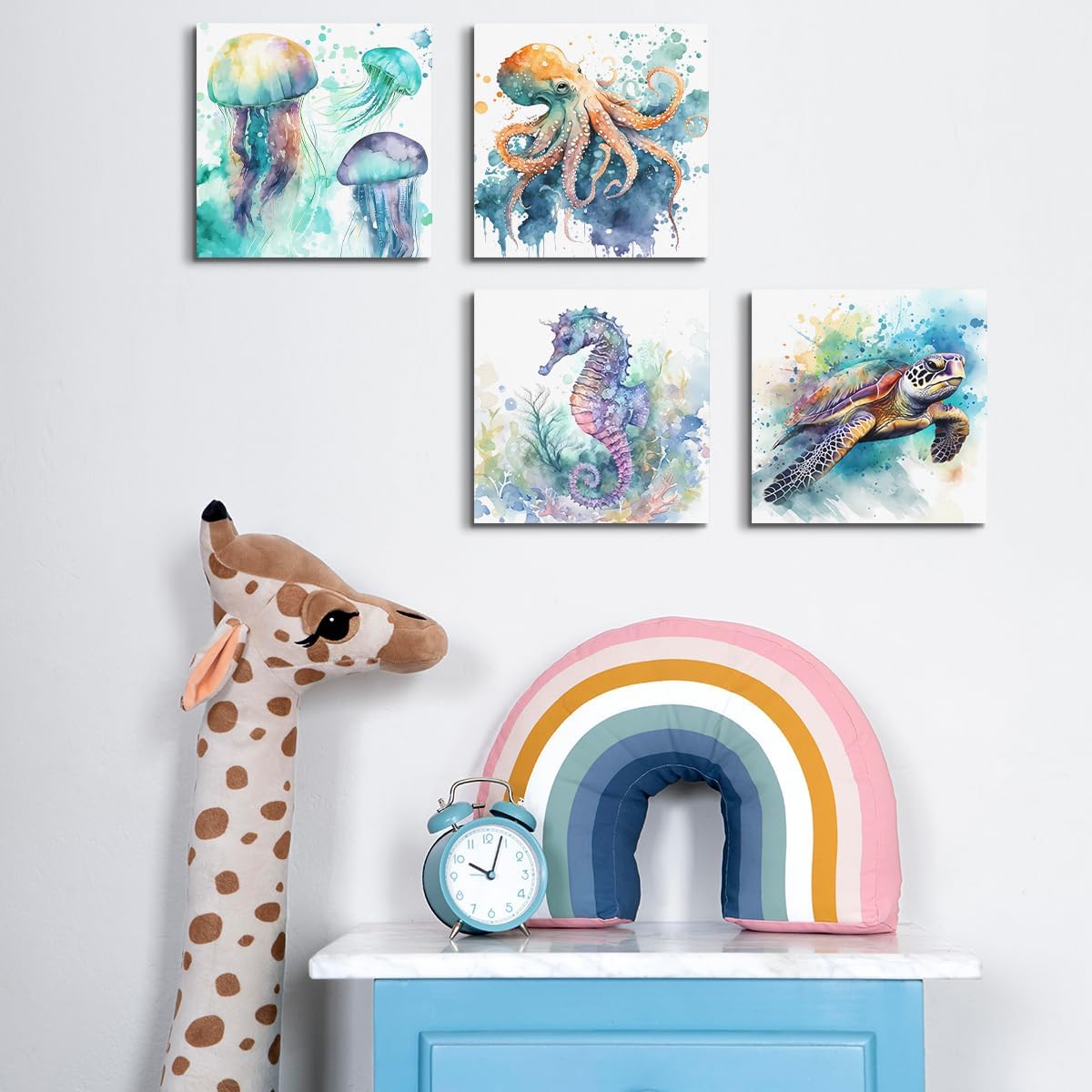 4PCS Summer Sea Animals Room Wall Decor Jellyfish Sea Turtle