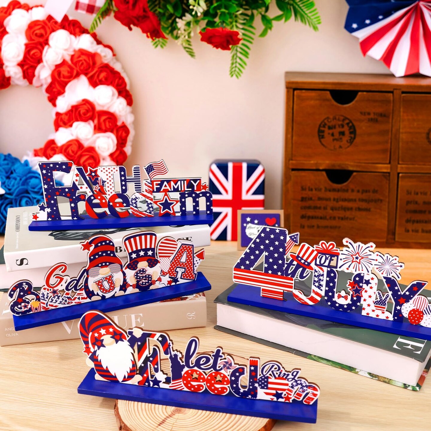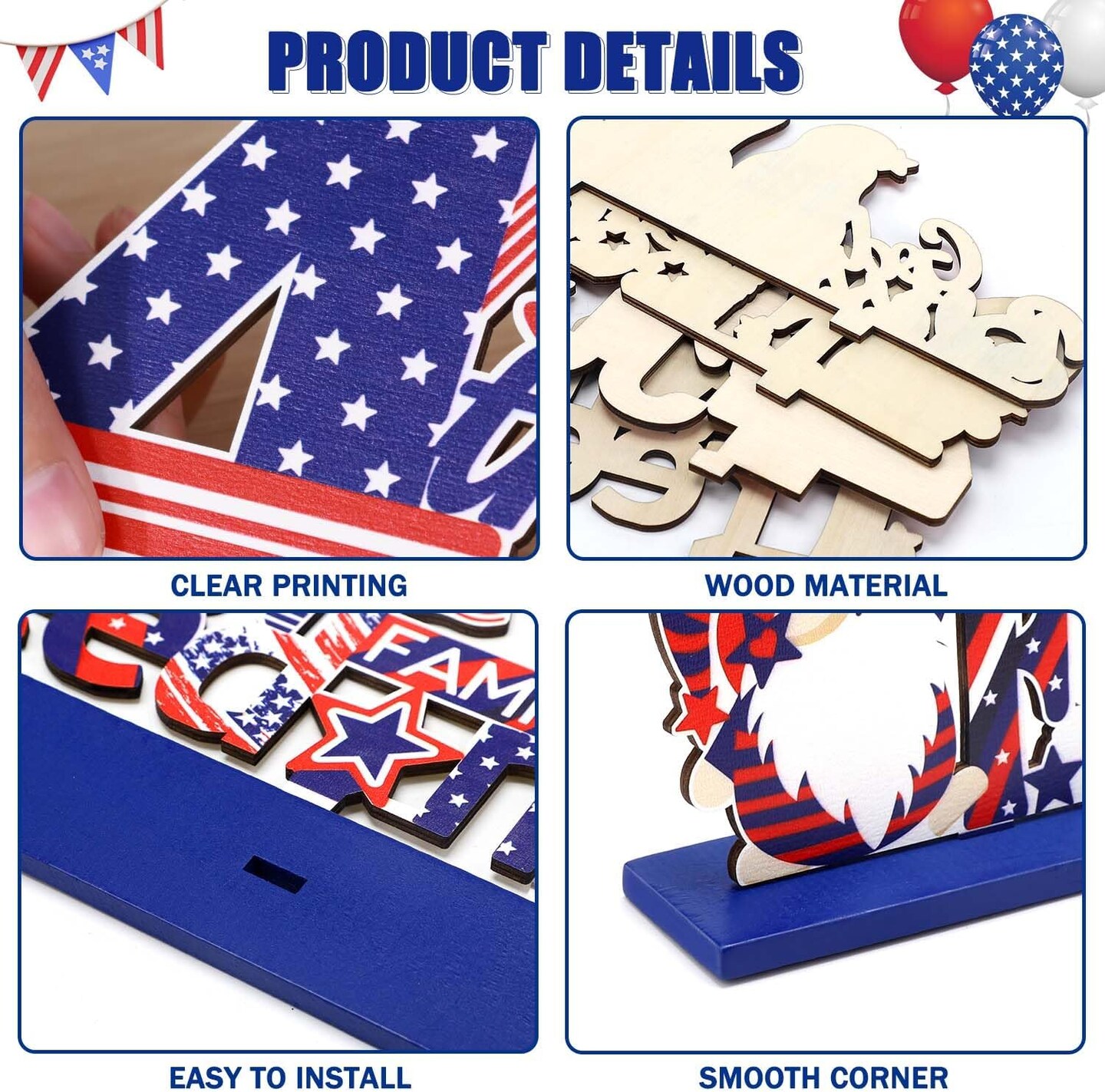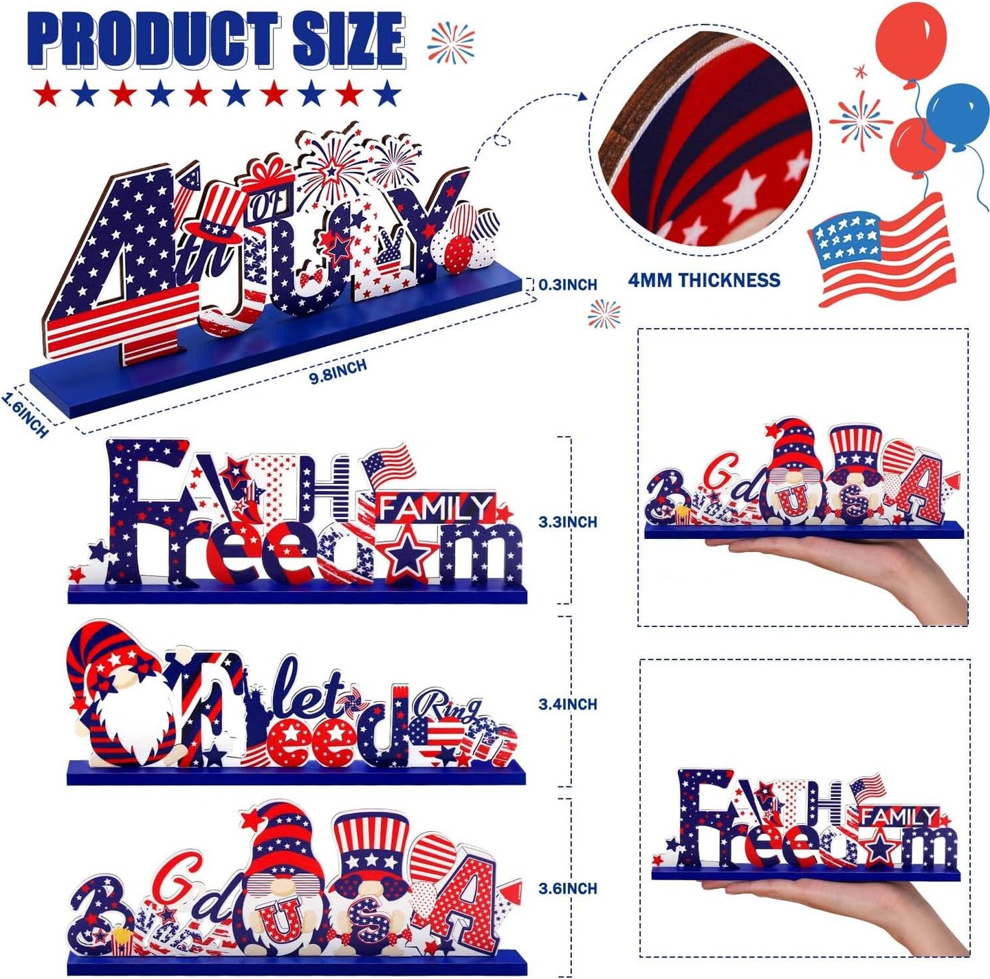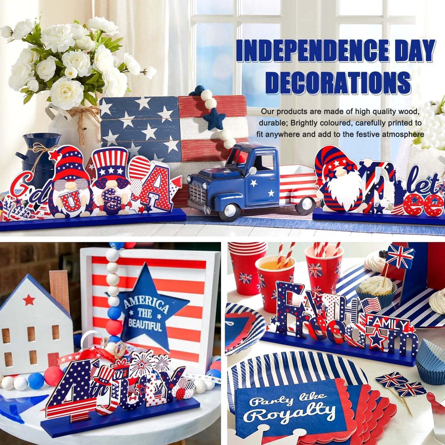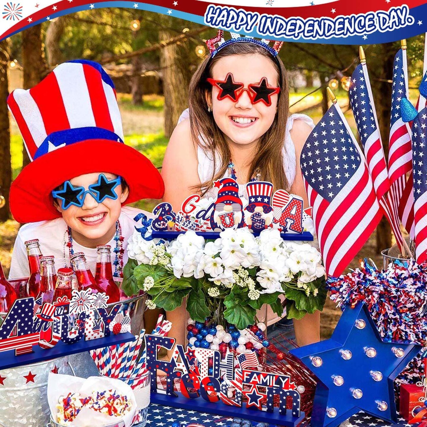 4-Piece 4th of July Decorations – Patriotic Red, White & Blue Gnomes for Home, Classroom, or Office, Memorial Day & Independence Day
