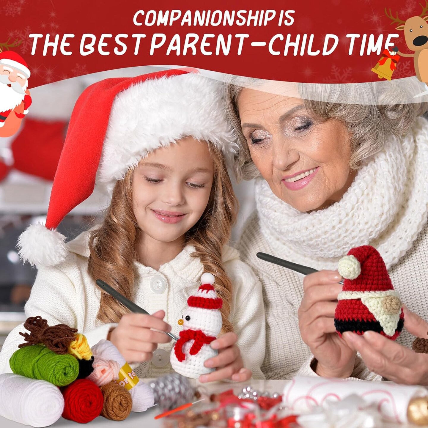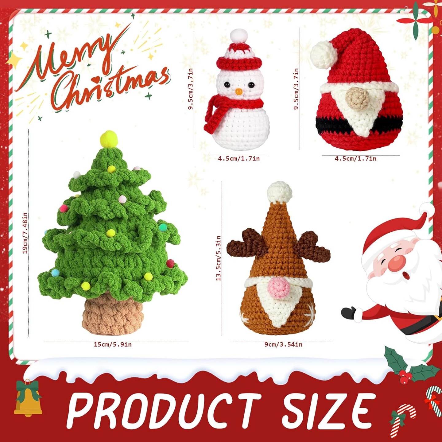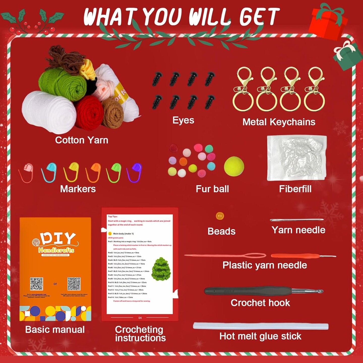 4-Piece Beginner Christmas Crochet Kit – DIY Xmas Craft Set with Yarn, Hooks, Keychains & Step-by-Step Video Tutorials – Holiday Gifts & Winter Decorations for Adults
