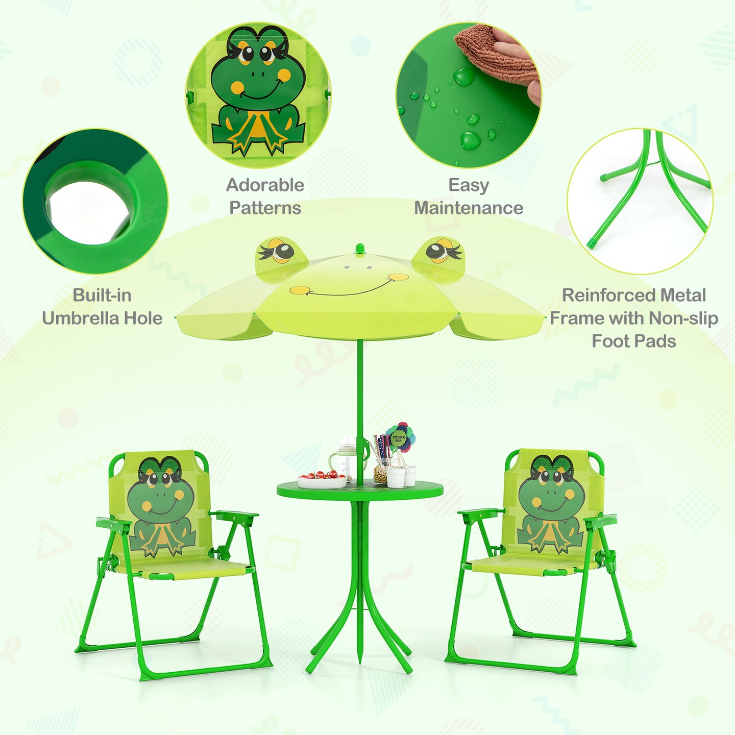 4-Piece Kids Picnic Set with Table, 2 Chairs, and Adjustable Umbrella