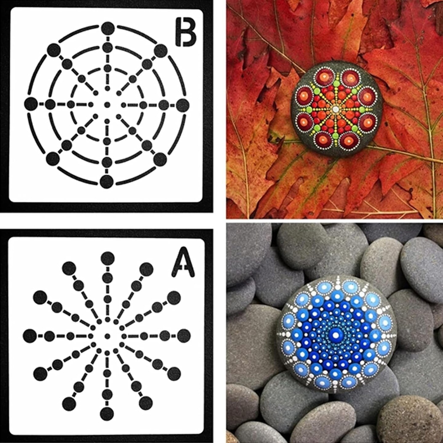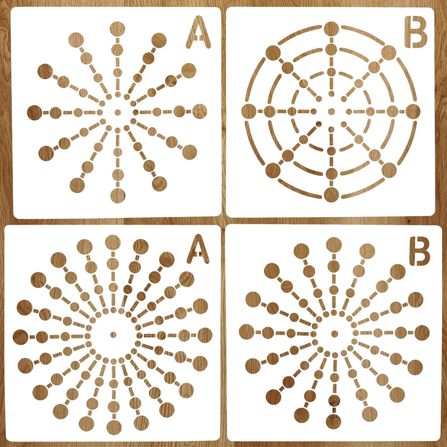 4-Piece Mandala Dot Painting Stencil Set – 8/12/16/20 Segment Reusable Templates for Wood, Wall, Floor, Tile, Fabric & DIY Art Projects