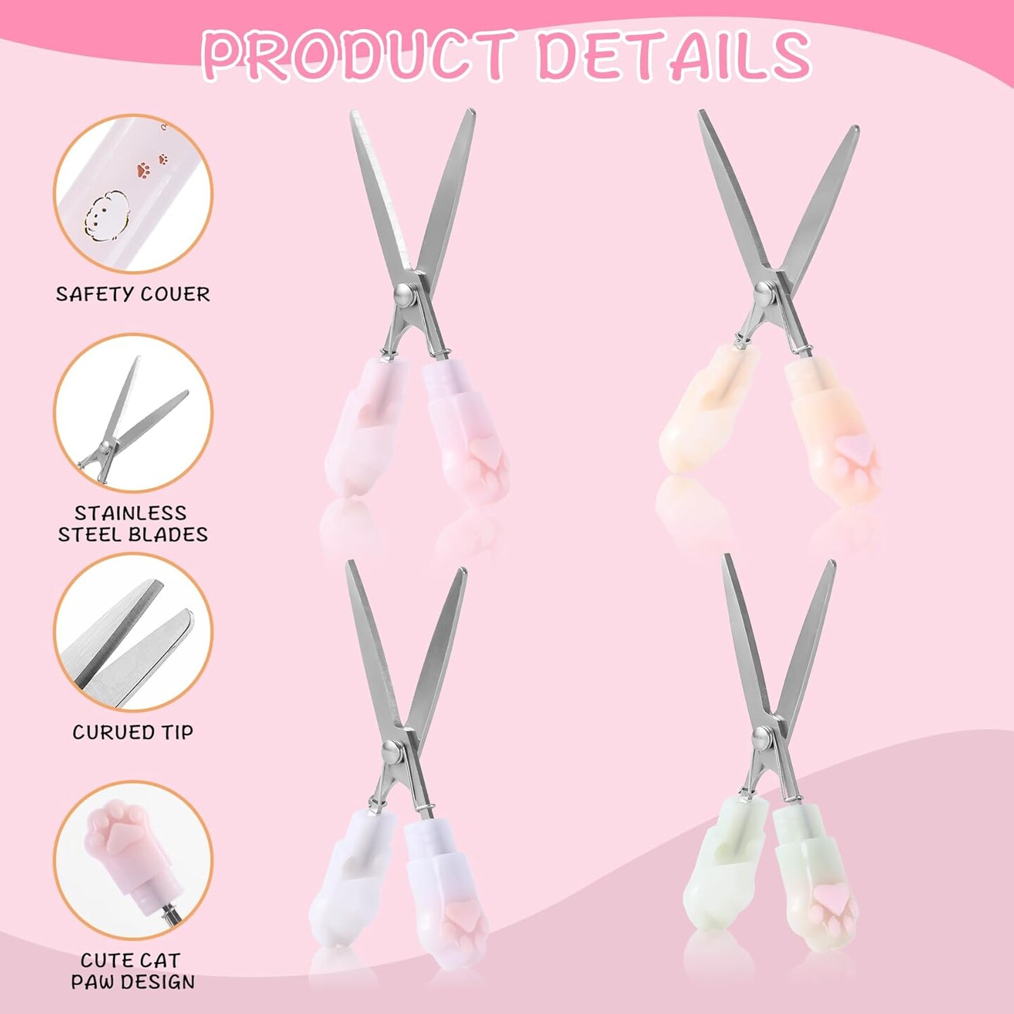 4-Piece Mini Cat Paw Scissors – Stainless Steel, Portable Craft & Scrapbooking Tools