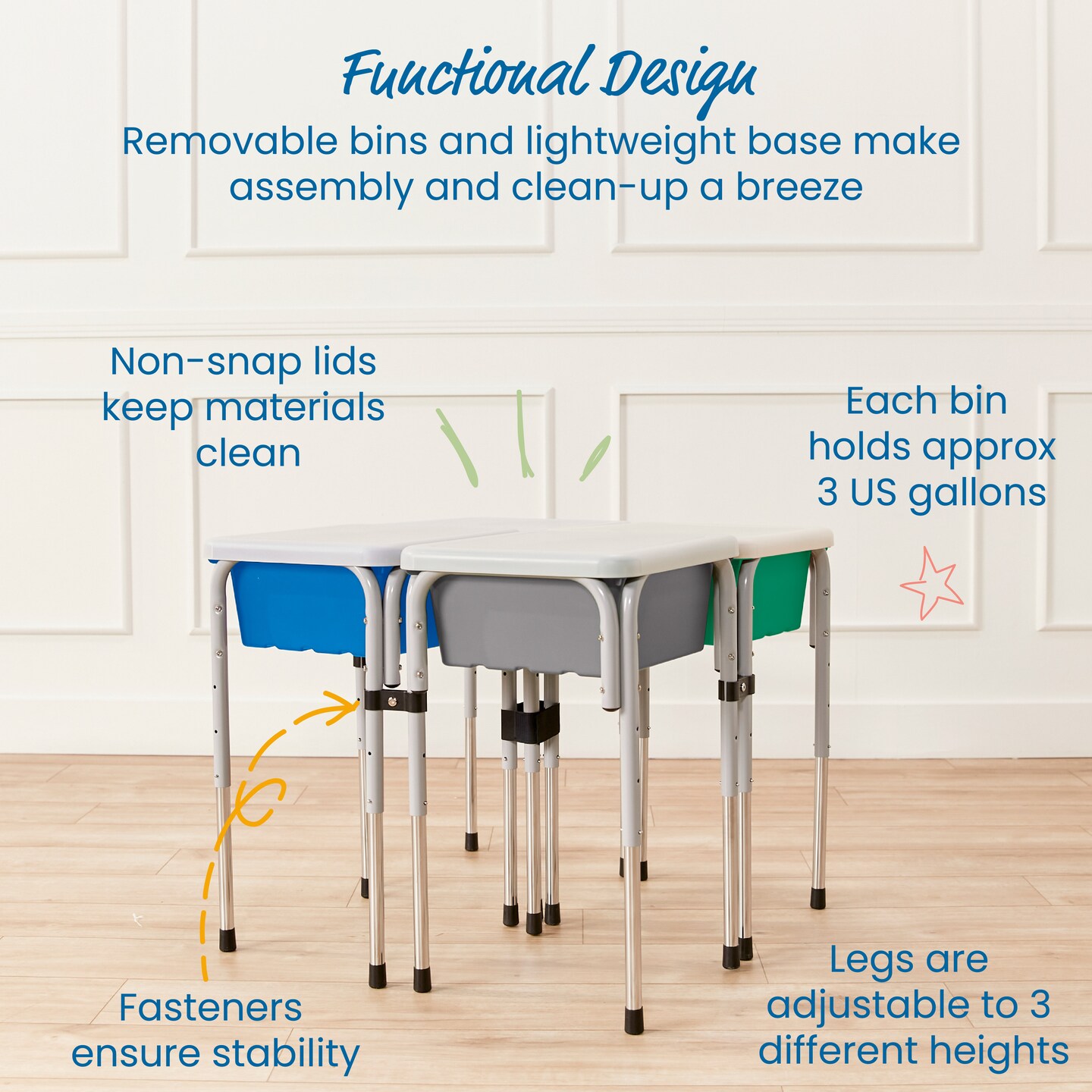 4-Station Sand and Water Adjustable Play Table, Sensory Bins