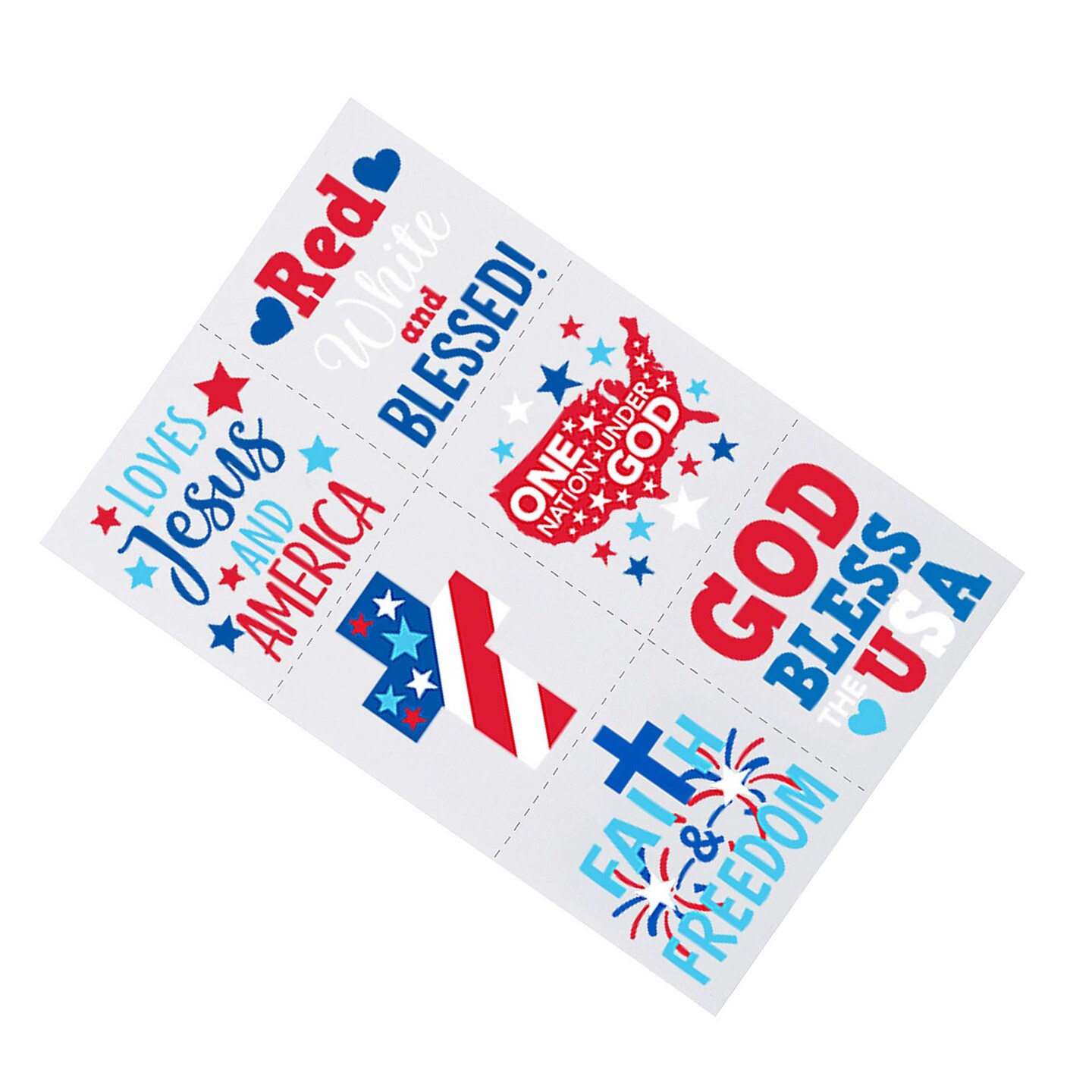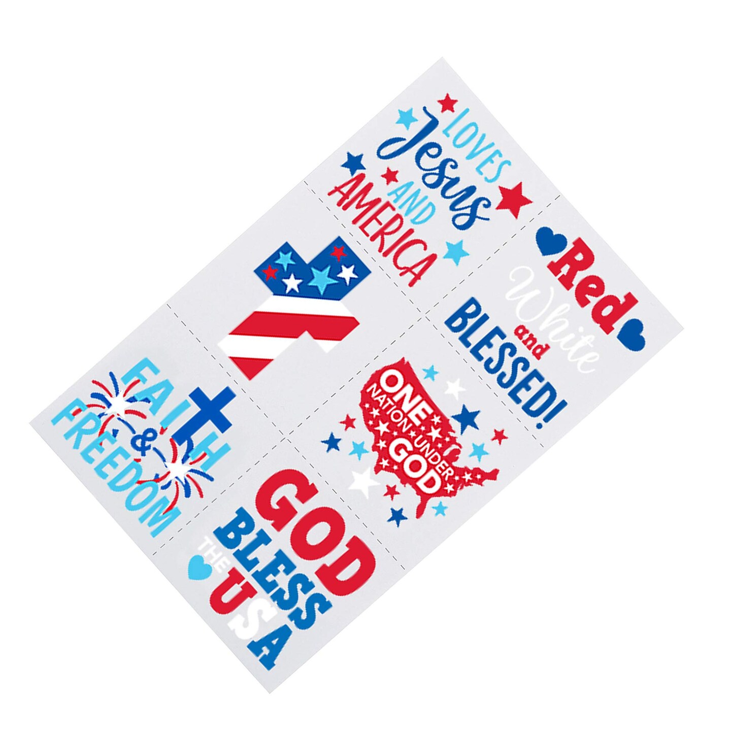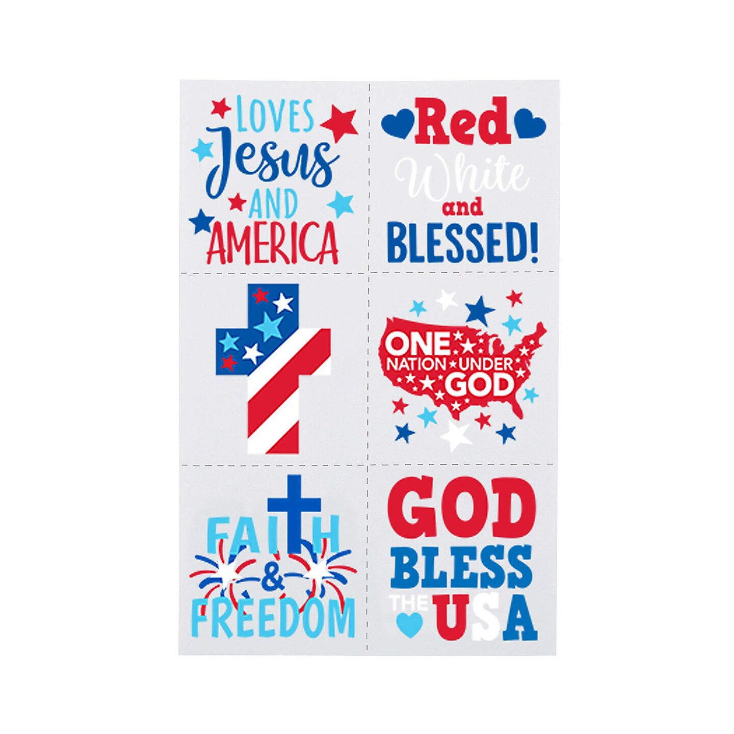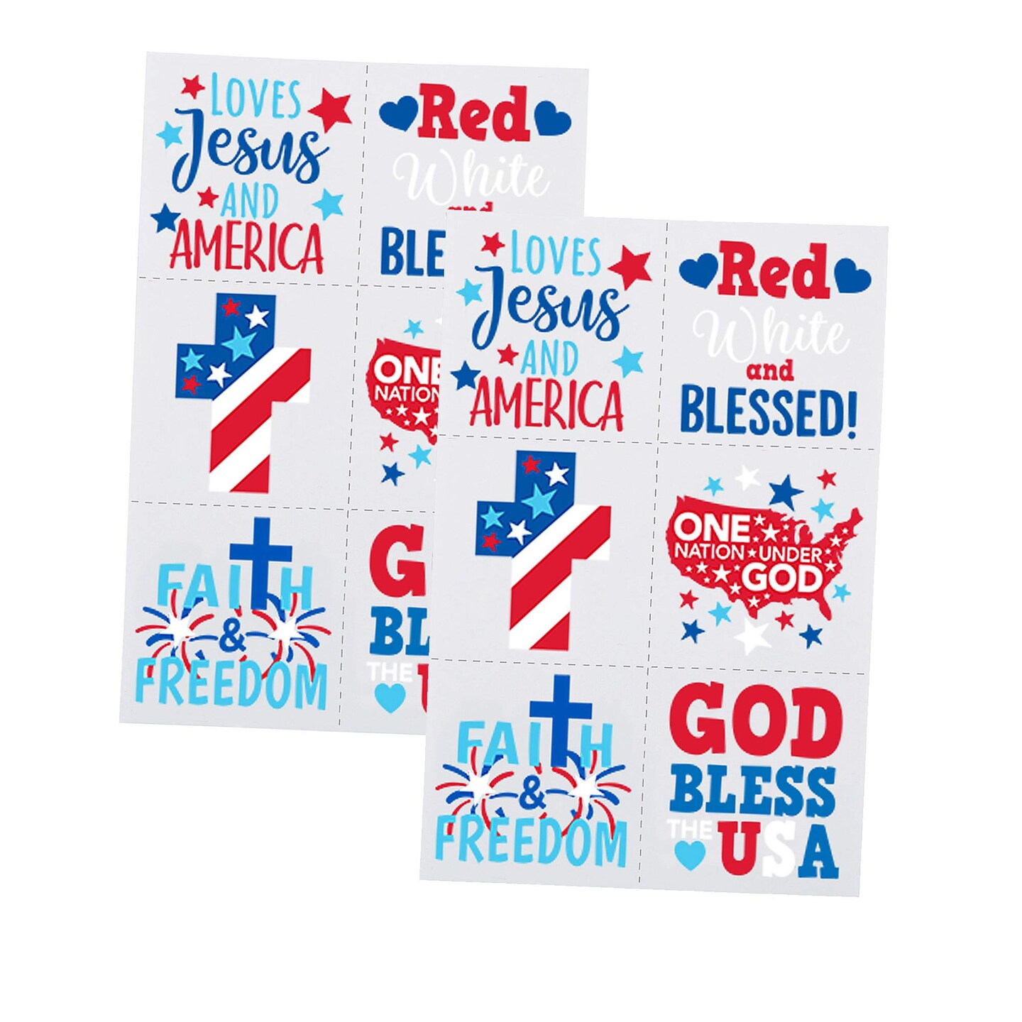 4th July Religious Patriotic Temporary Tattoos 72 Pieces