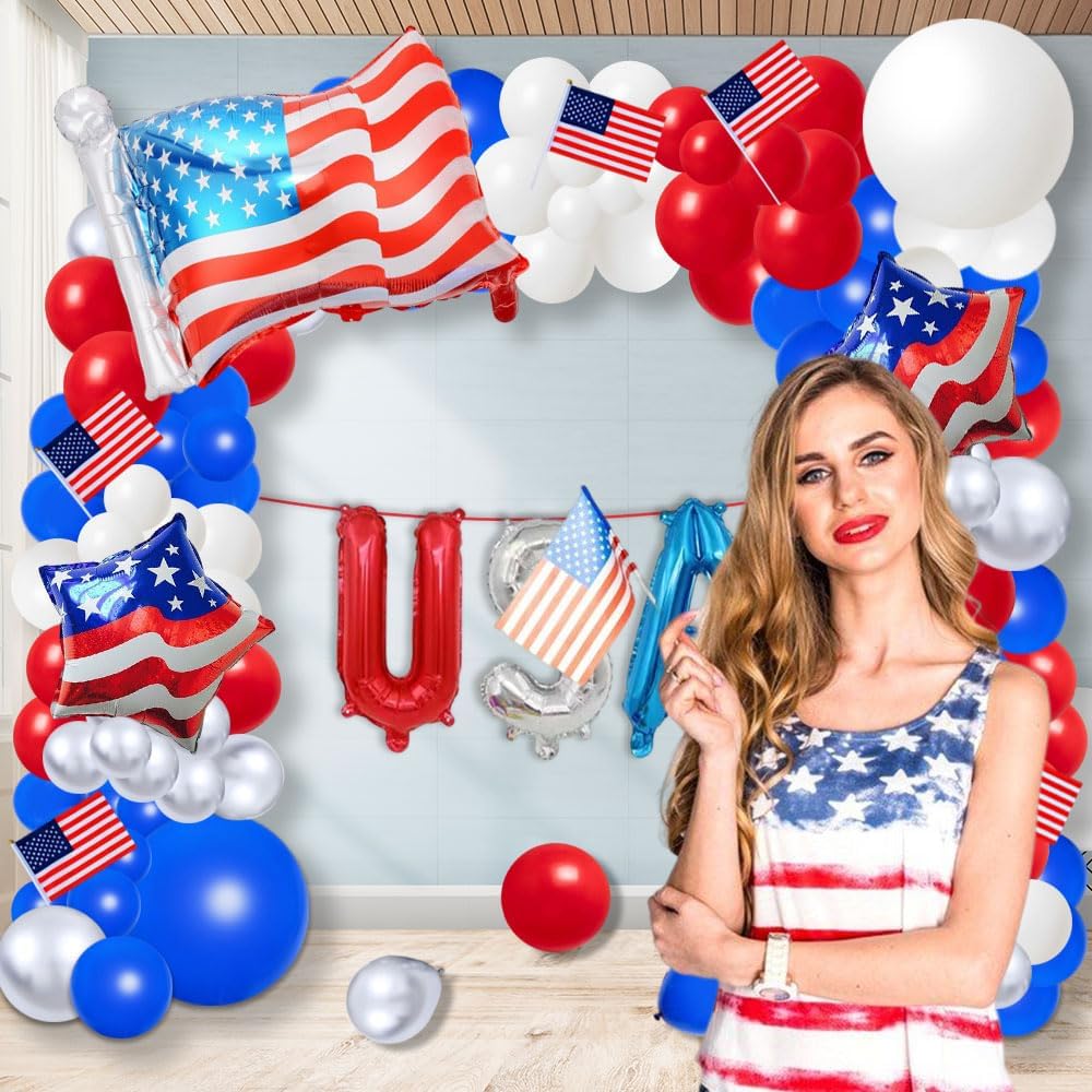 4th of July Balloon Garland Arch Kit Veterans Day Decorations Red White and Blue Balloon