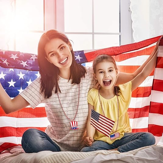 4th of July Bead Necklaces Patriotic Metallic Beaded Necklaces (Plastic, Felt)