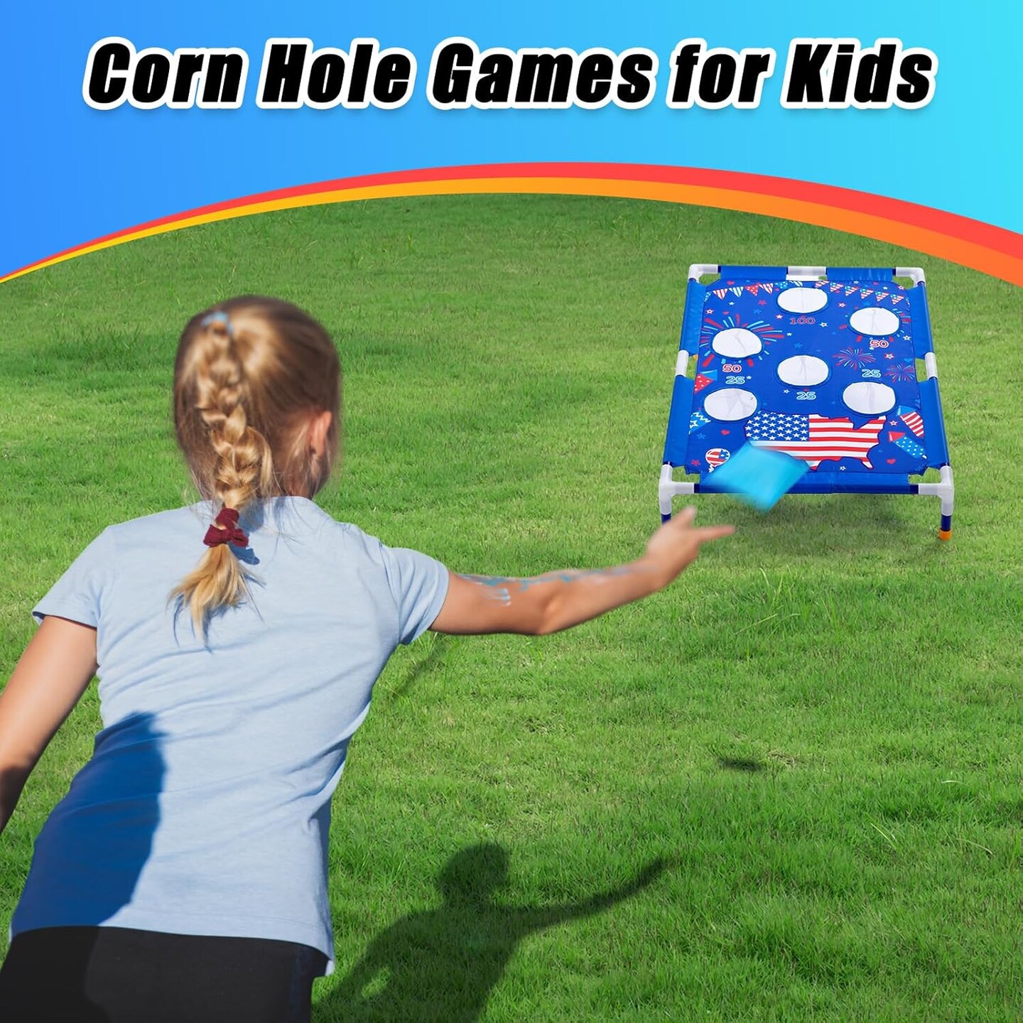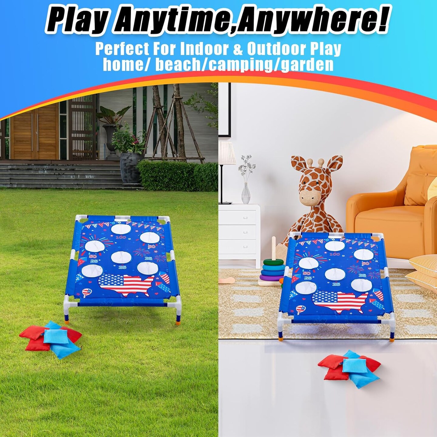 4th of July Bean Bag Toss Games with 6 Bean Bags American Flag Portable PVC