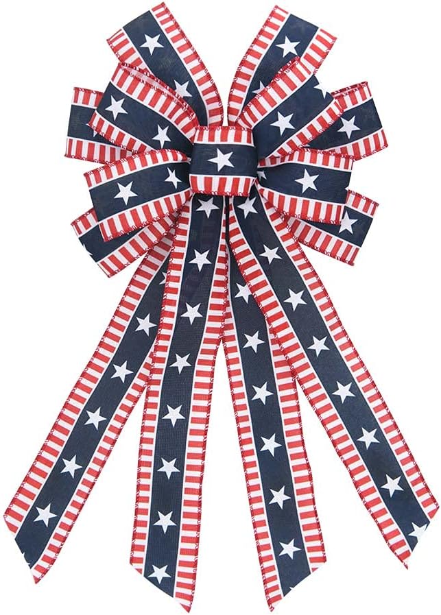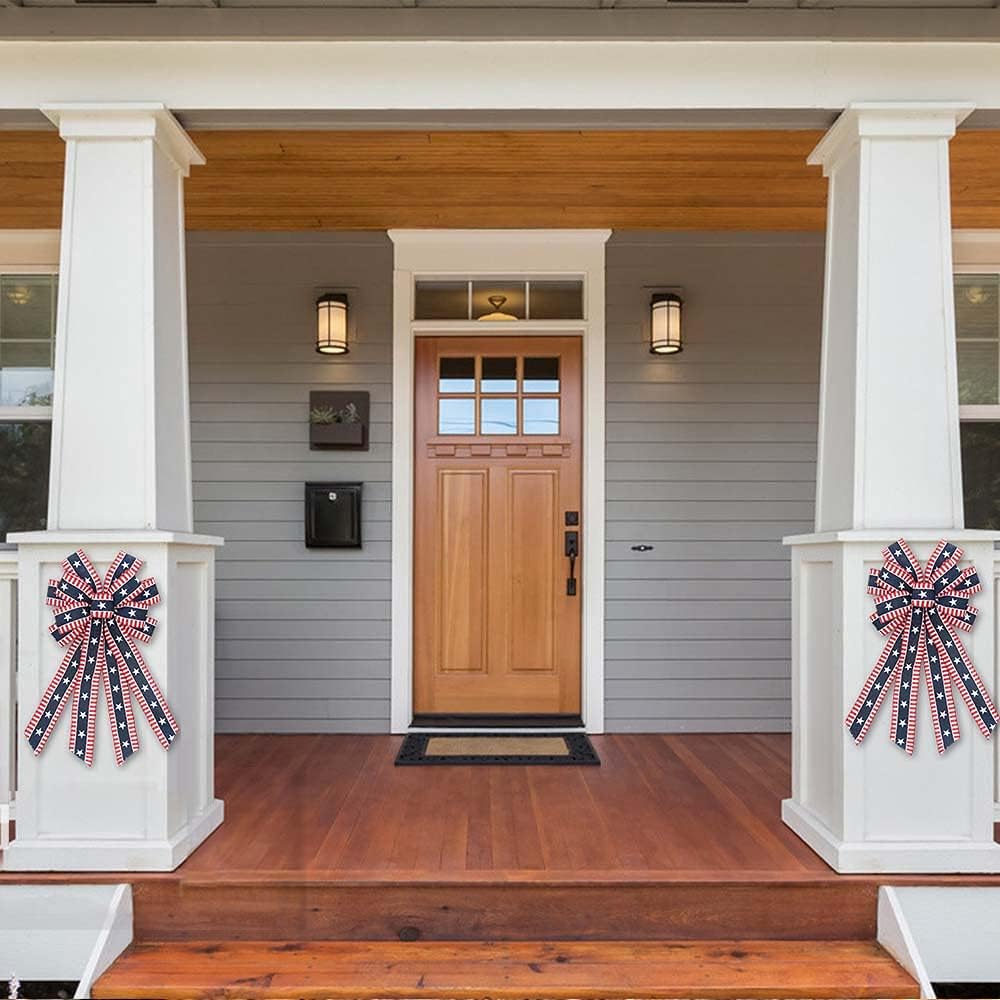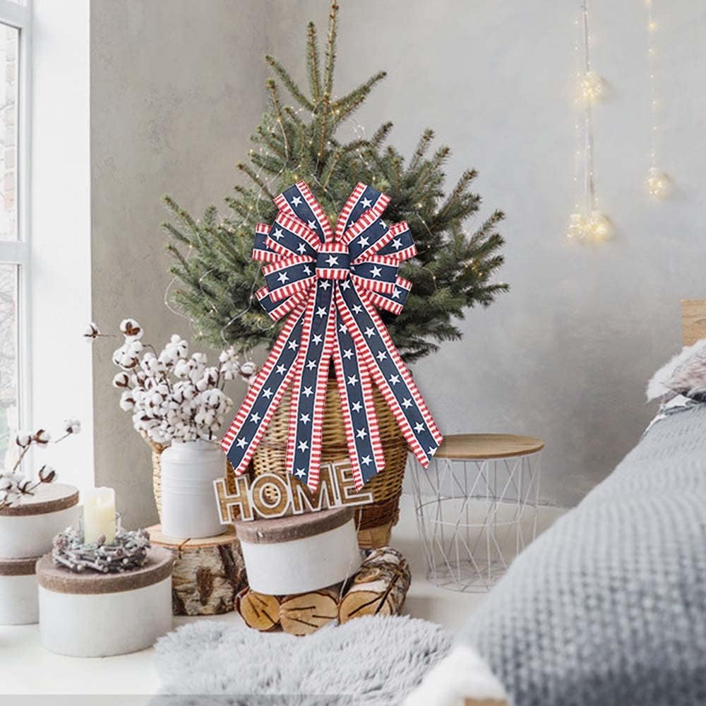 4th of July Bows for Wreath, American Stars Patriotic Wreath Red Blue Burlap for Memorial Day Front Door