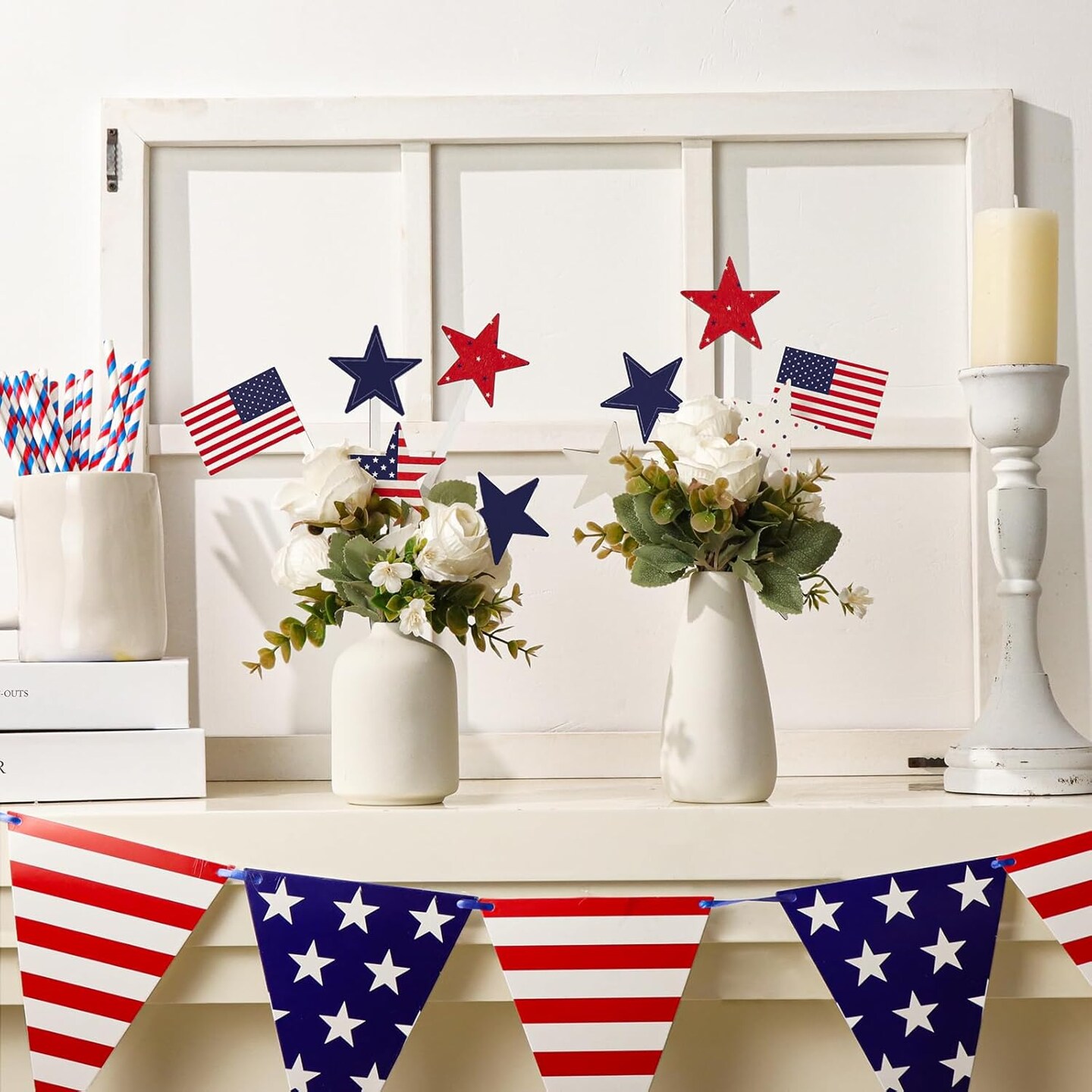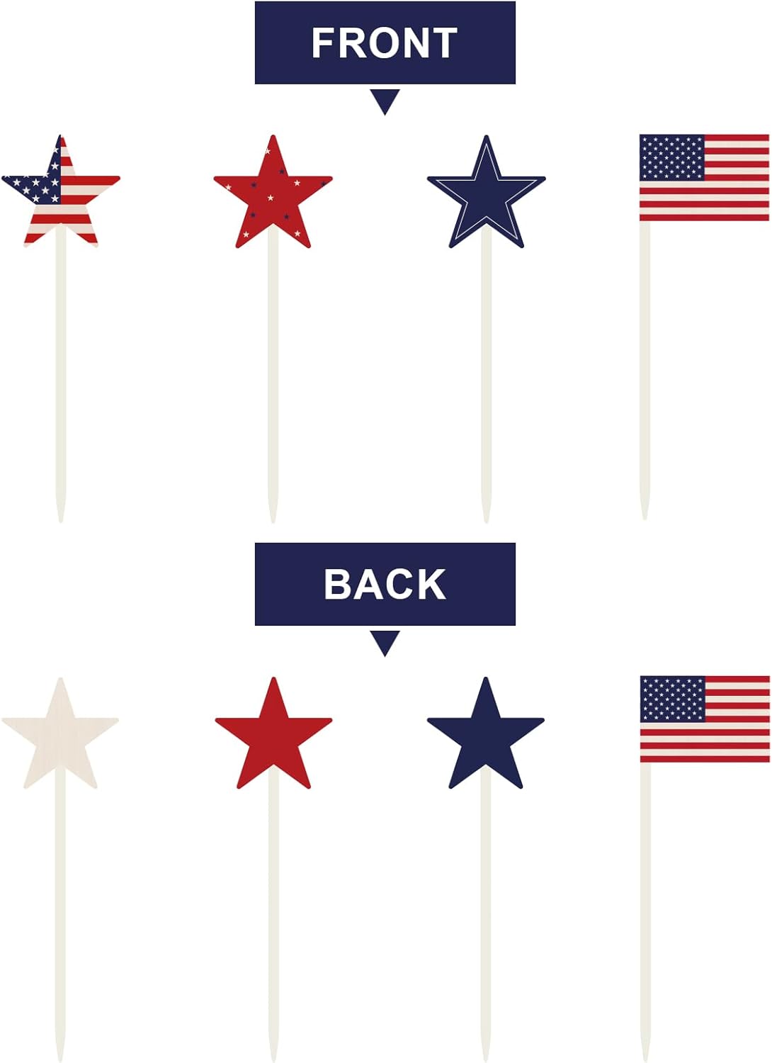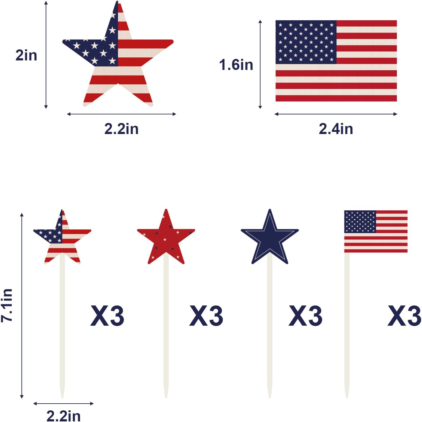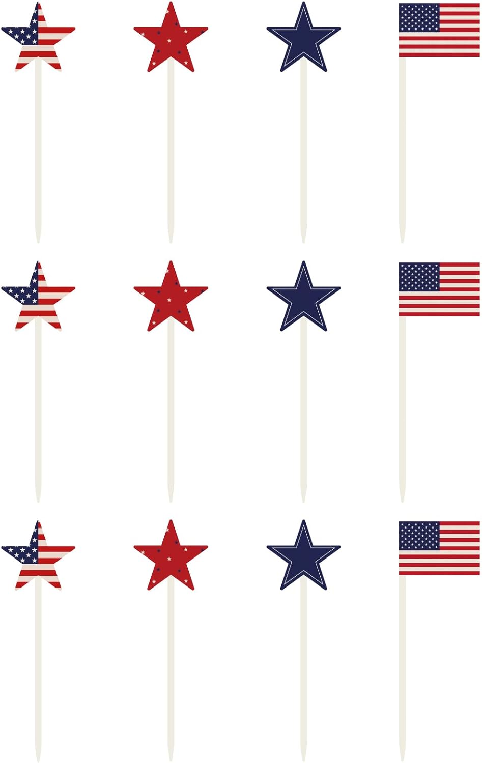 4th of July Decorations, 12Pcs Patriotic Decorations American Flag Red White Blue Stars, Fourth of July Wooden Star Picks for Patriotic Wreath Table Centerpieces Decoration