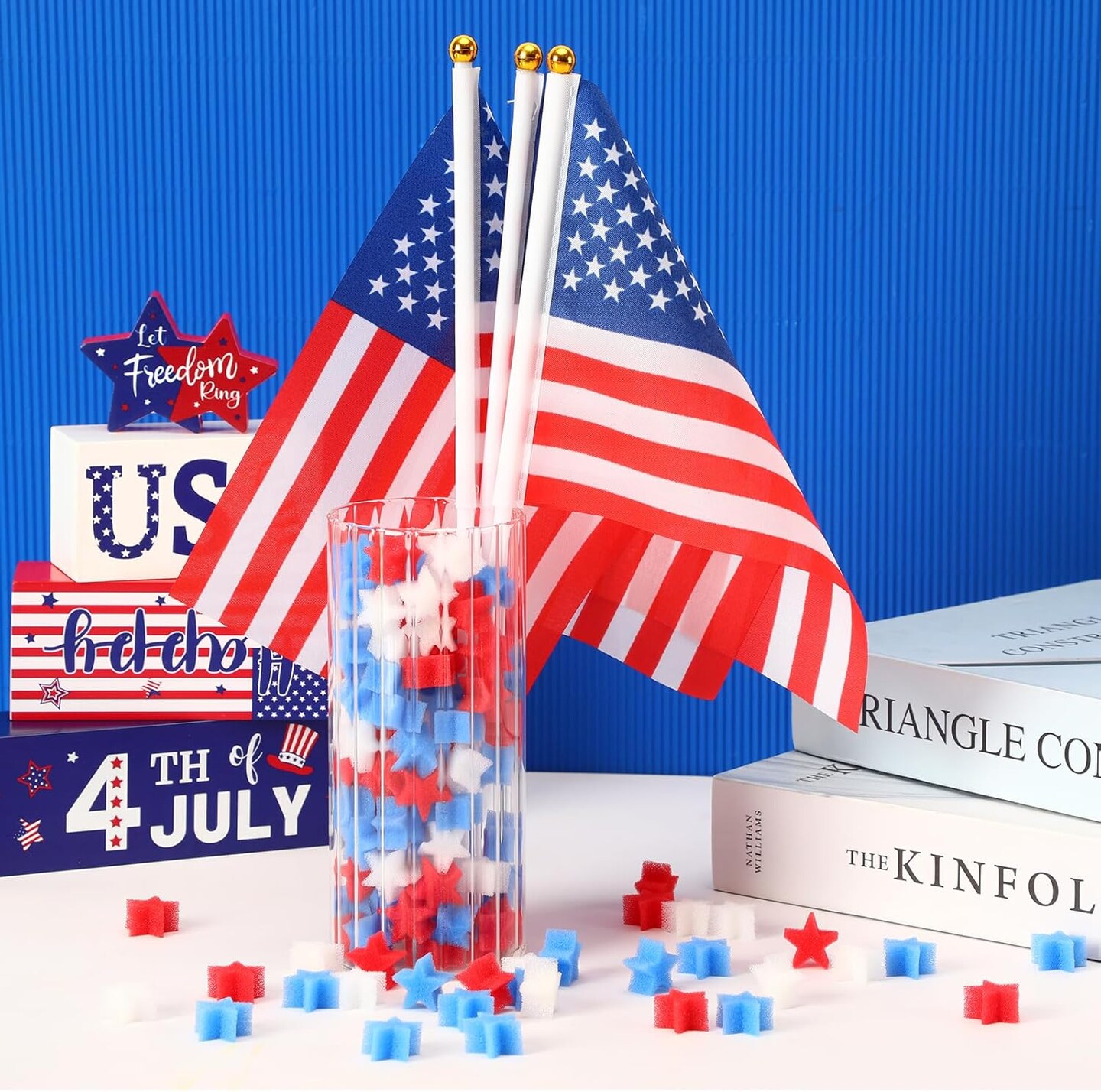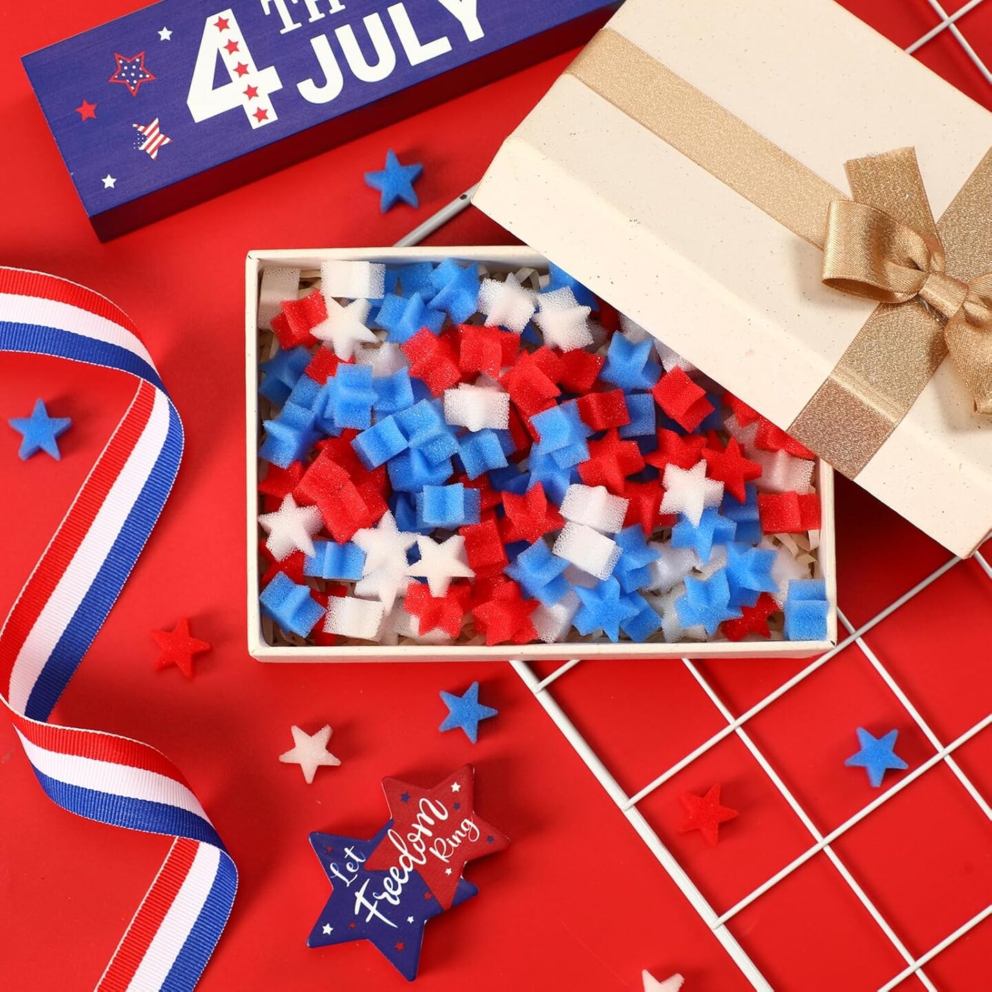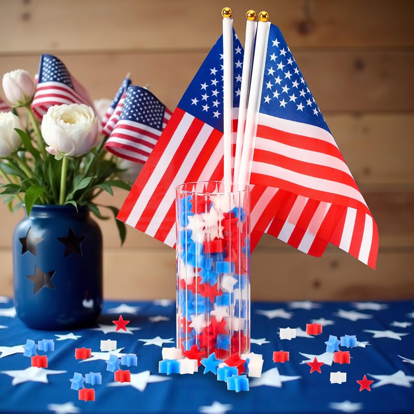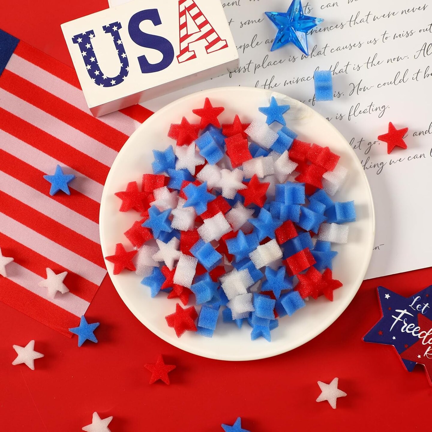 4th of July Decorations, 180 Pcs Red White Blue Sponge Stars for Home Tabletop Centerpiece Decor