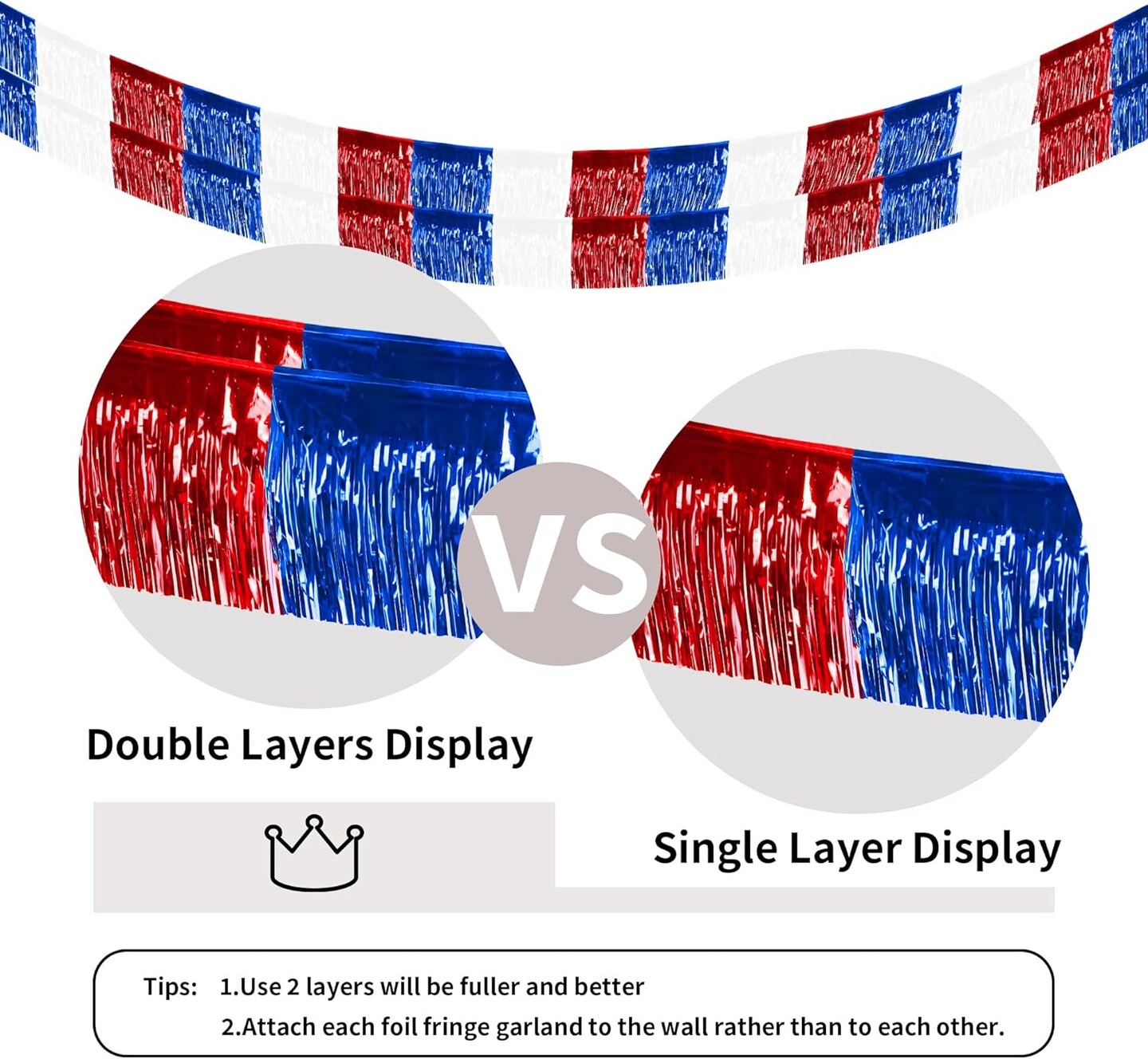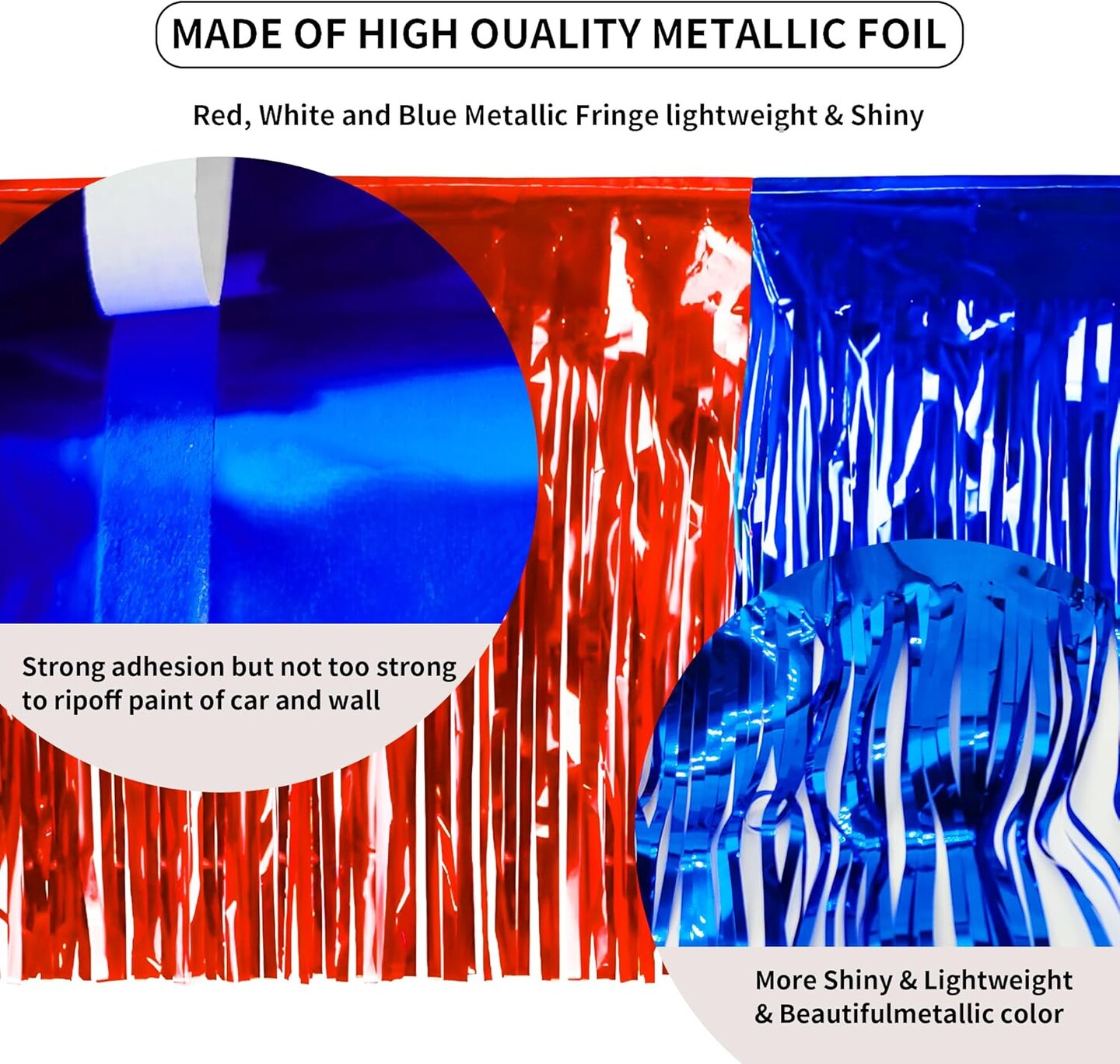4th of July Decorations 8 Pack Tinsel Foil Fringe Garland Curtains Streamers Red White Blue