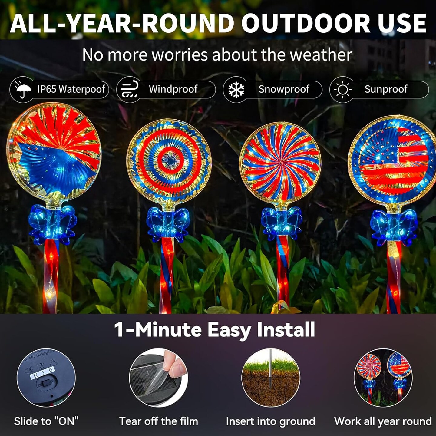 4th of July Decorations Outdoor, 4 Pack Waterproof Outdoor
