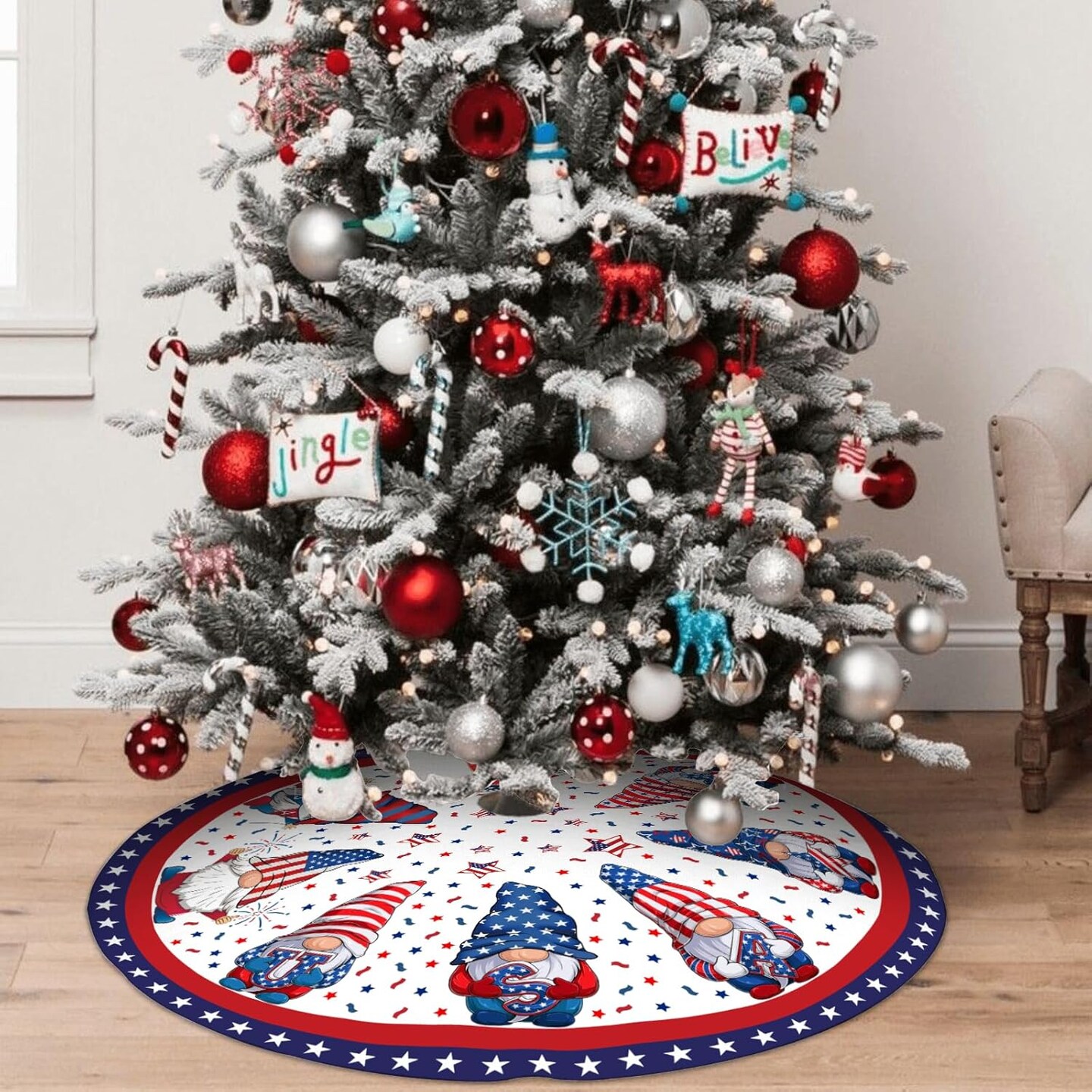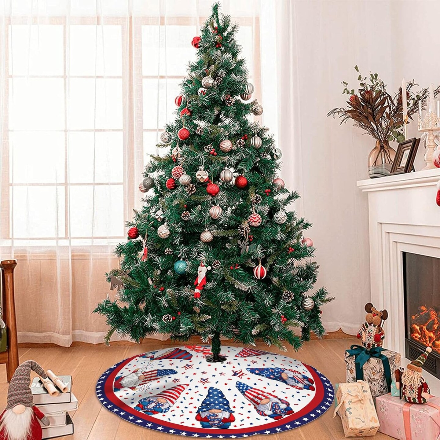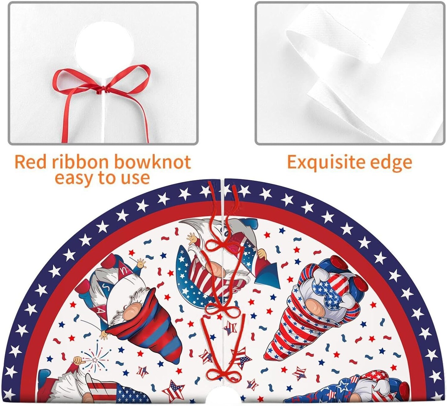 4th of July Decoratios for Tree Skirt Gnome Stars Patriotic America Memorial Day 36in Holiday Tree Skirt Decor for Party Indoor Home