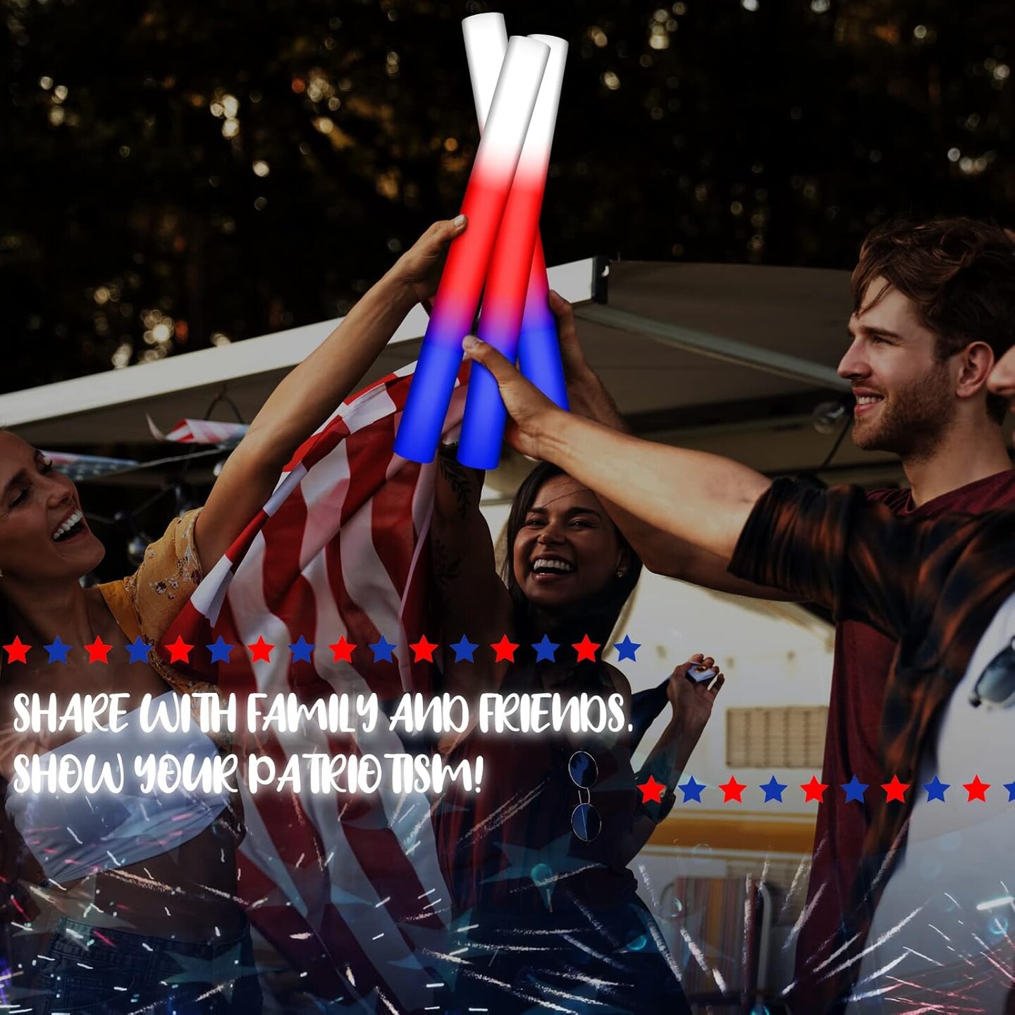 4th of July Glow Sticks Bulk 15.8 Independence Day Red White and Blue LED