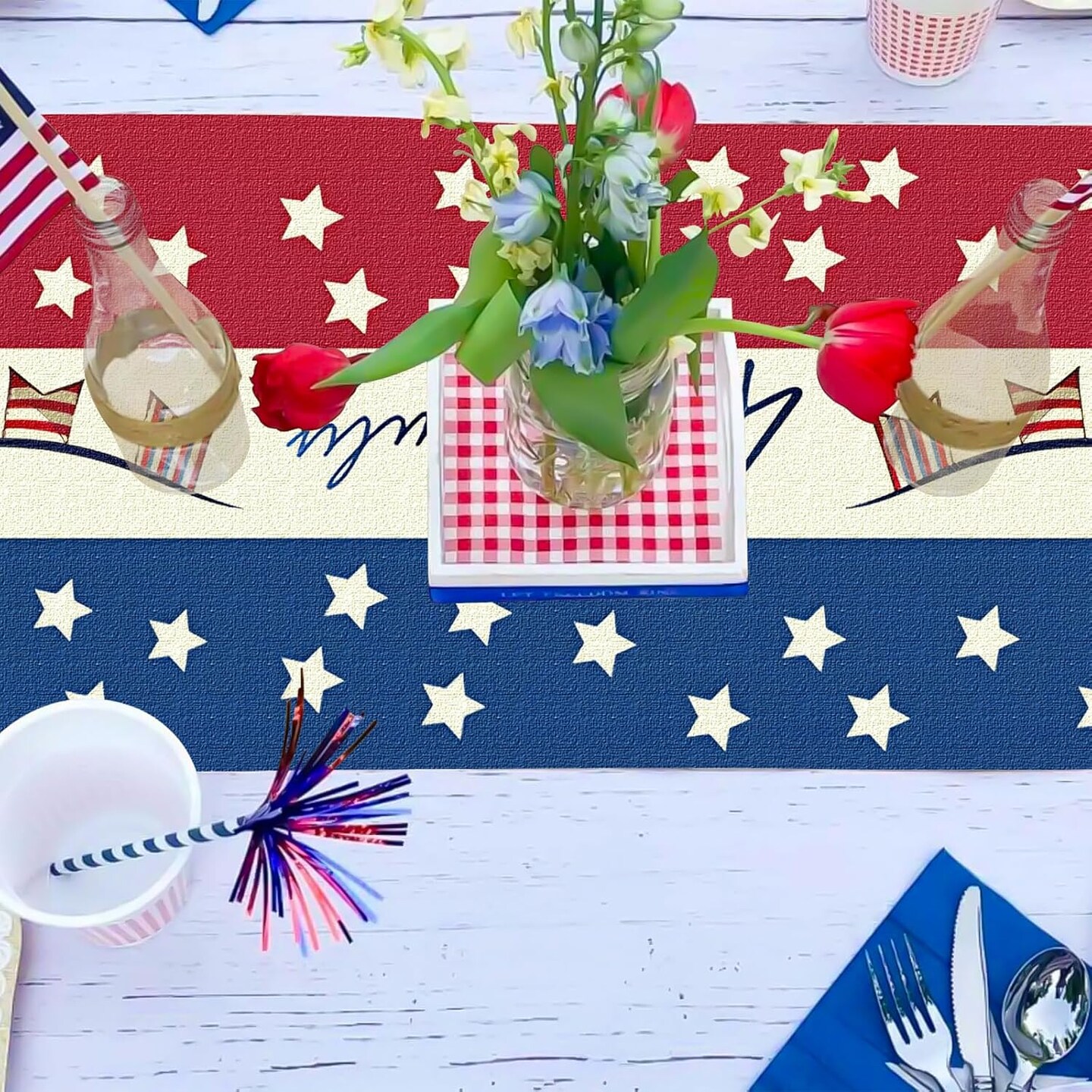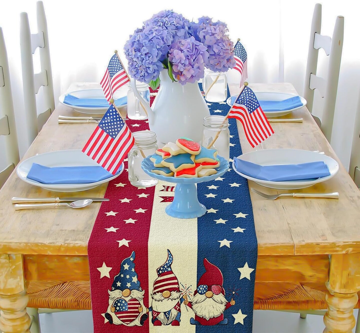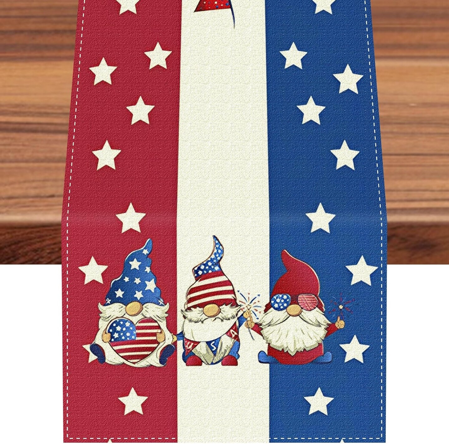 4th of July Gnome Stars Table Runner – Red, White & Blue Patriotic Décor, 13 x 108 Inch for Independence Day, Home, Party & Memorial Day Decorations