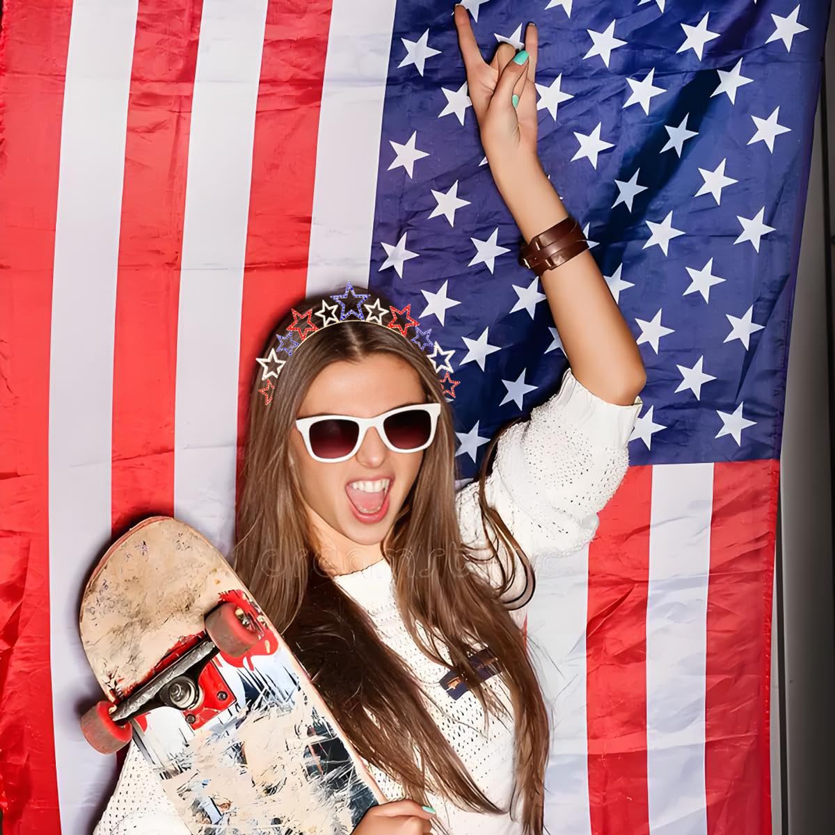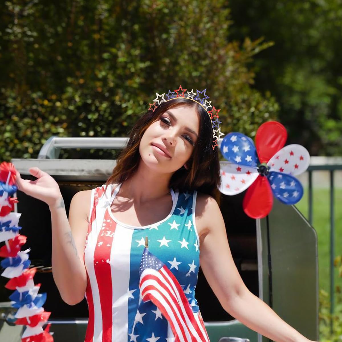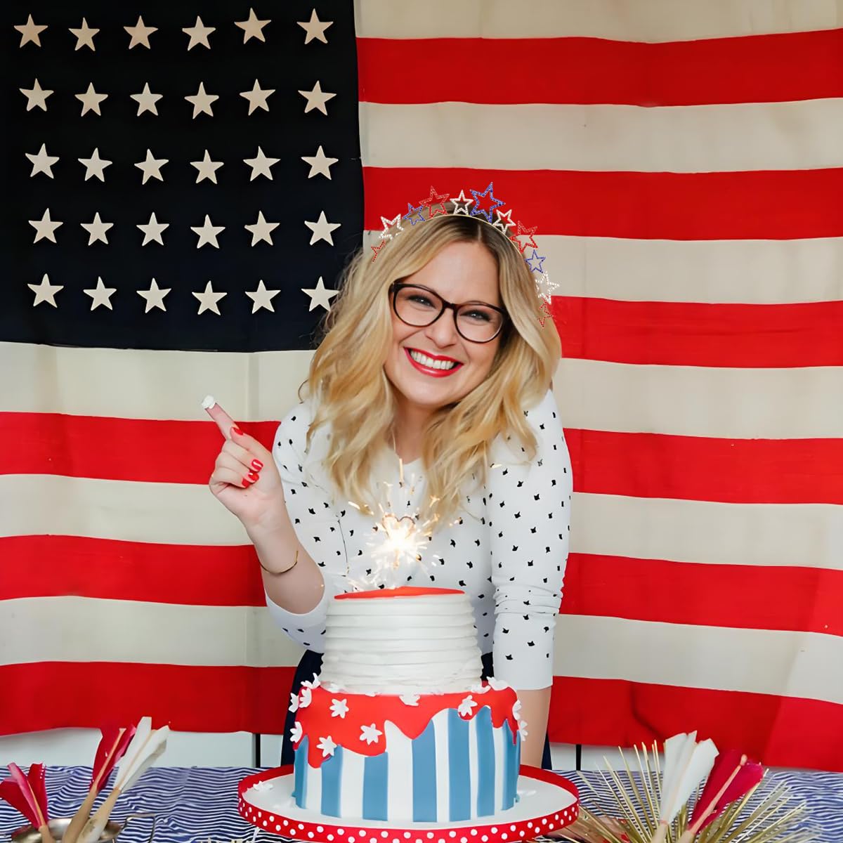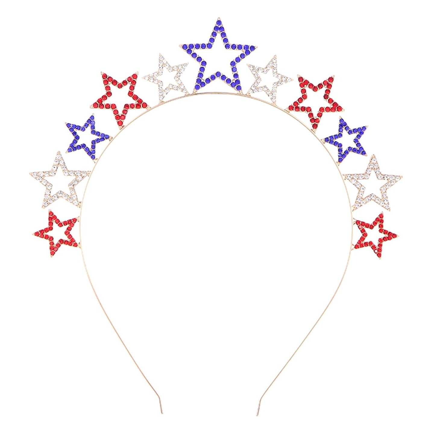 4th of July Headband - Rhinestone Star Patriotic Headband - Red White and Blue Star Headbands for 4th of July Accessories for Women - Fourth of July Party Props Decorations