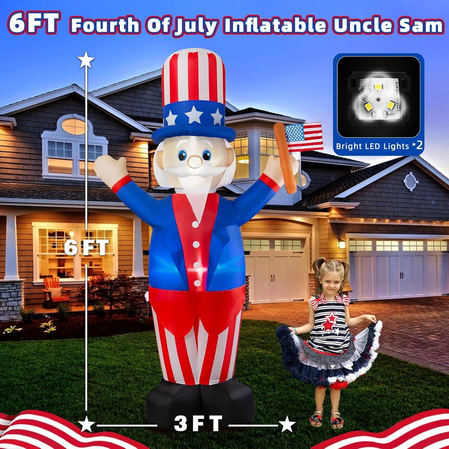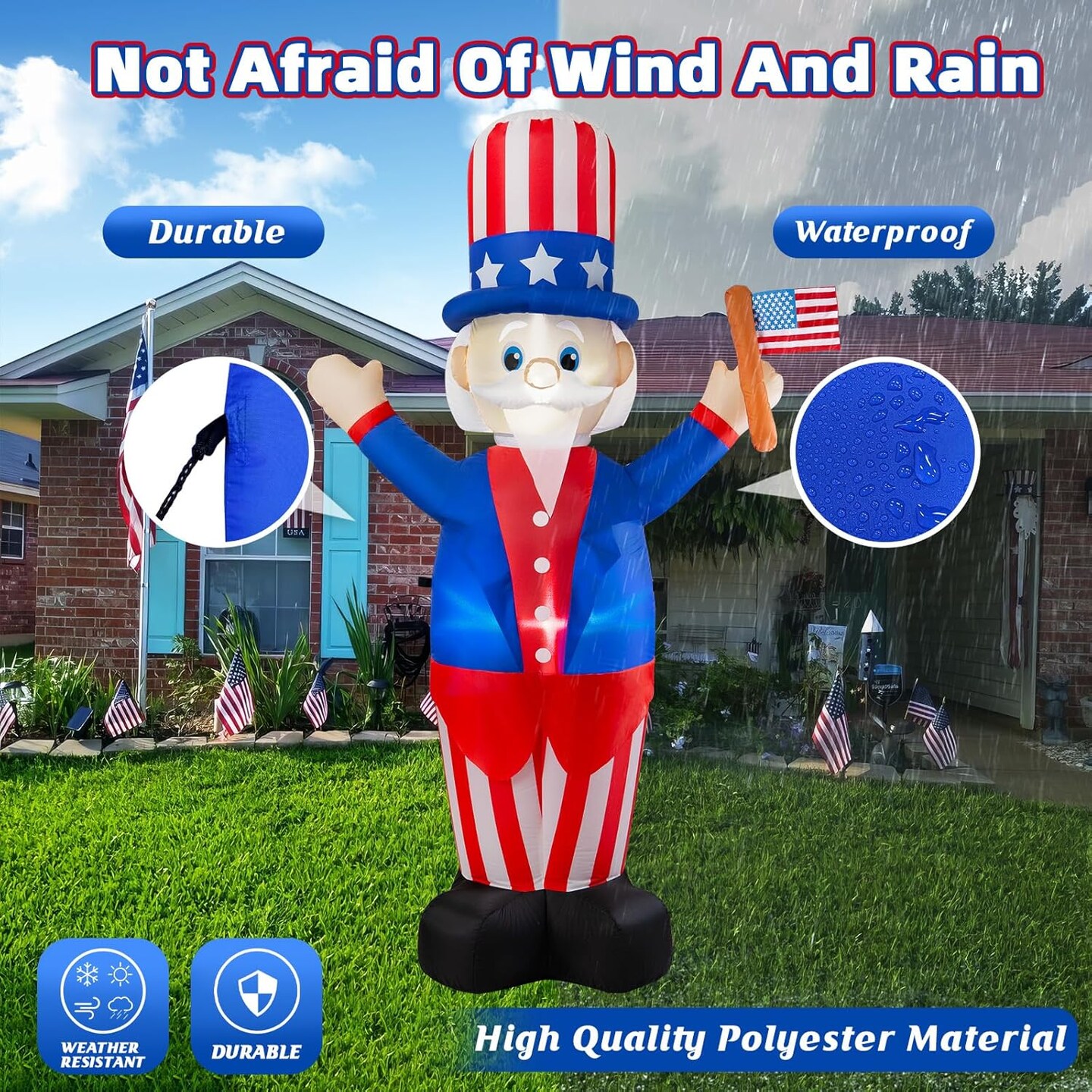 4th of July Inflatable Uncle Sam Decorations, 6FT Fourth of July Decorations (Blue)