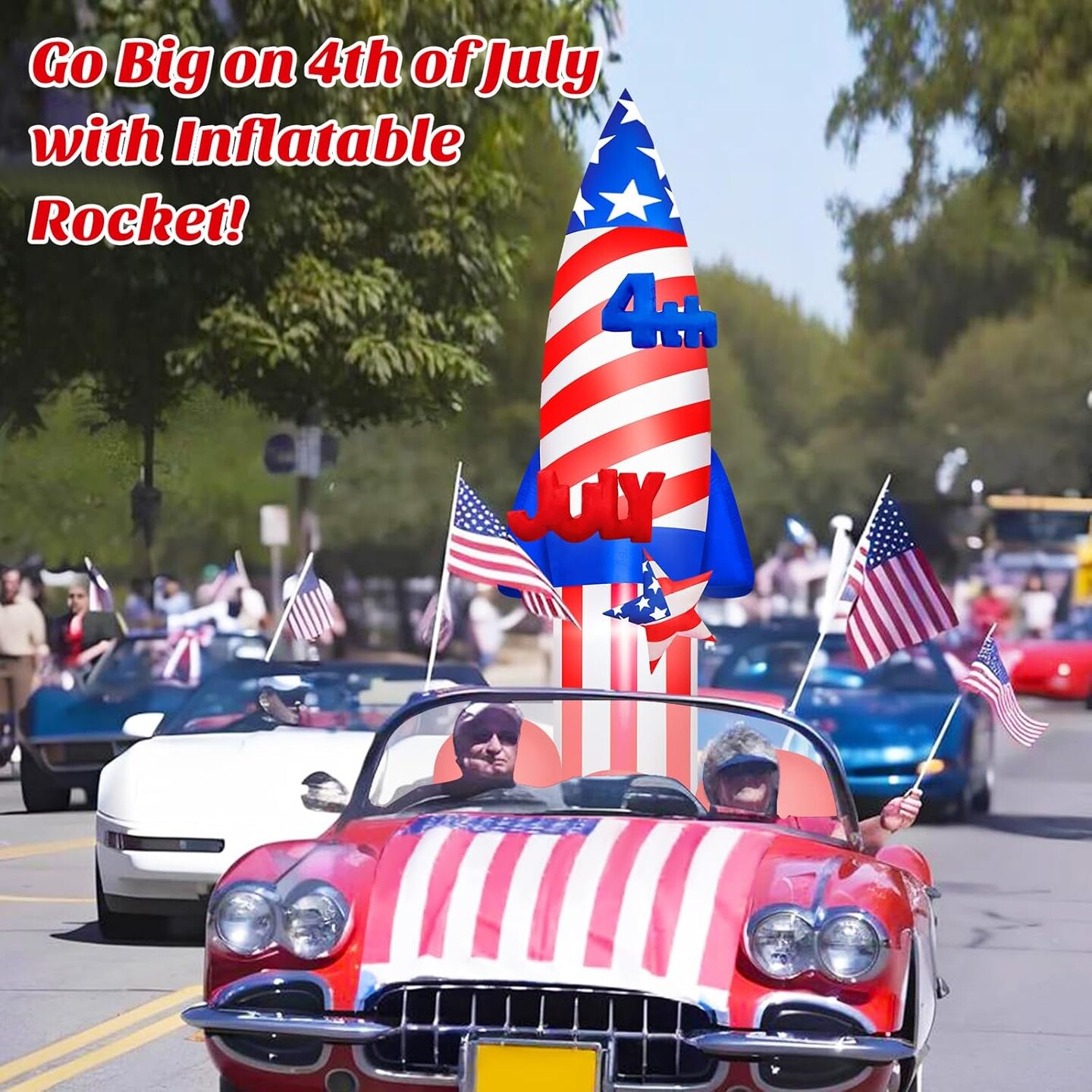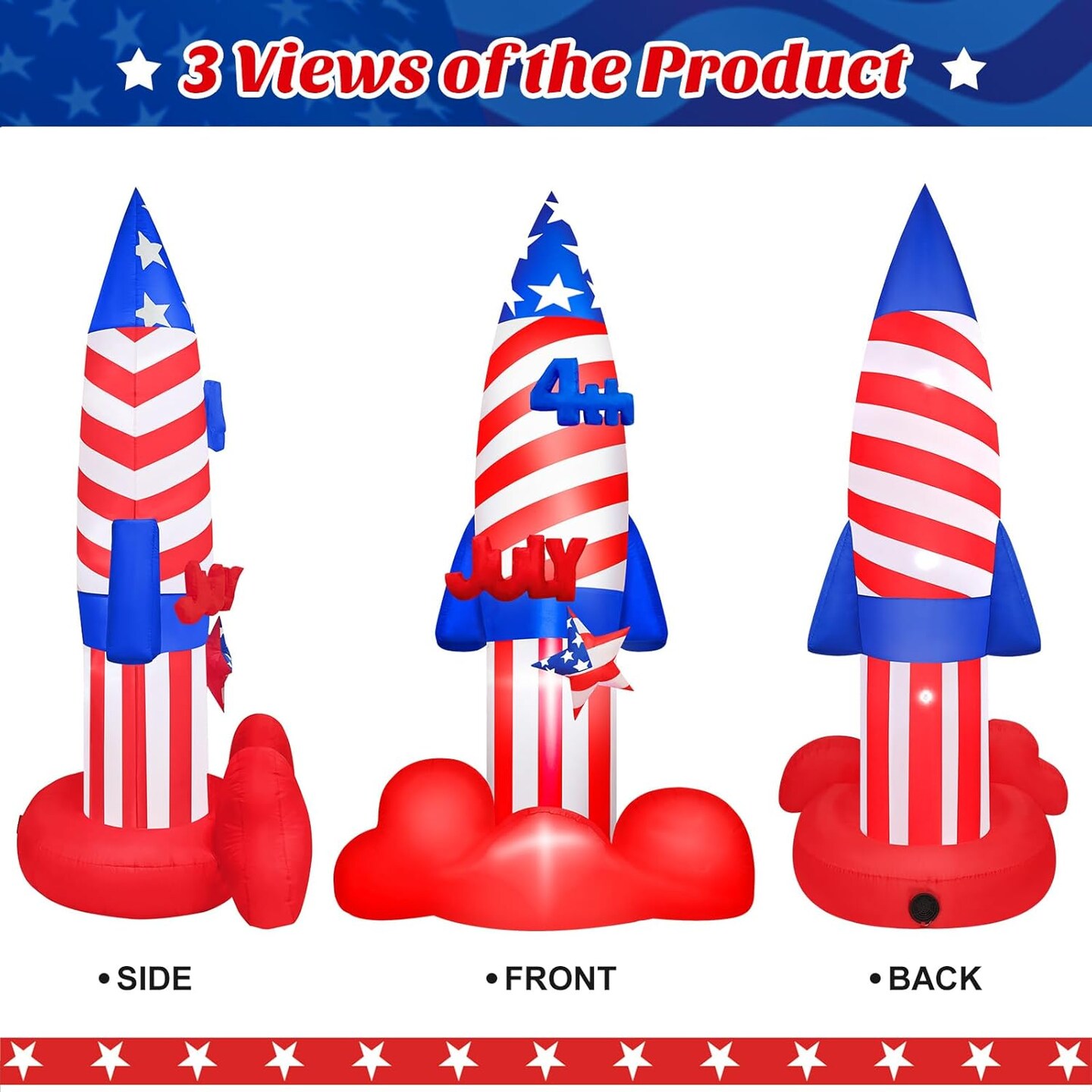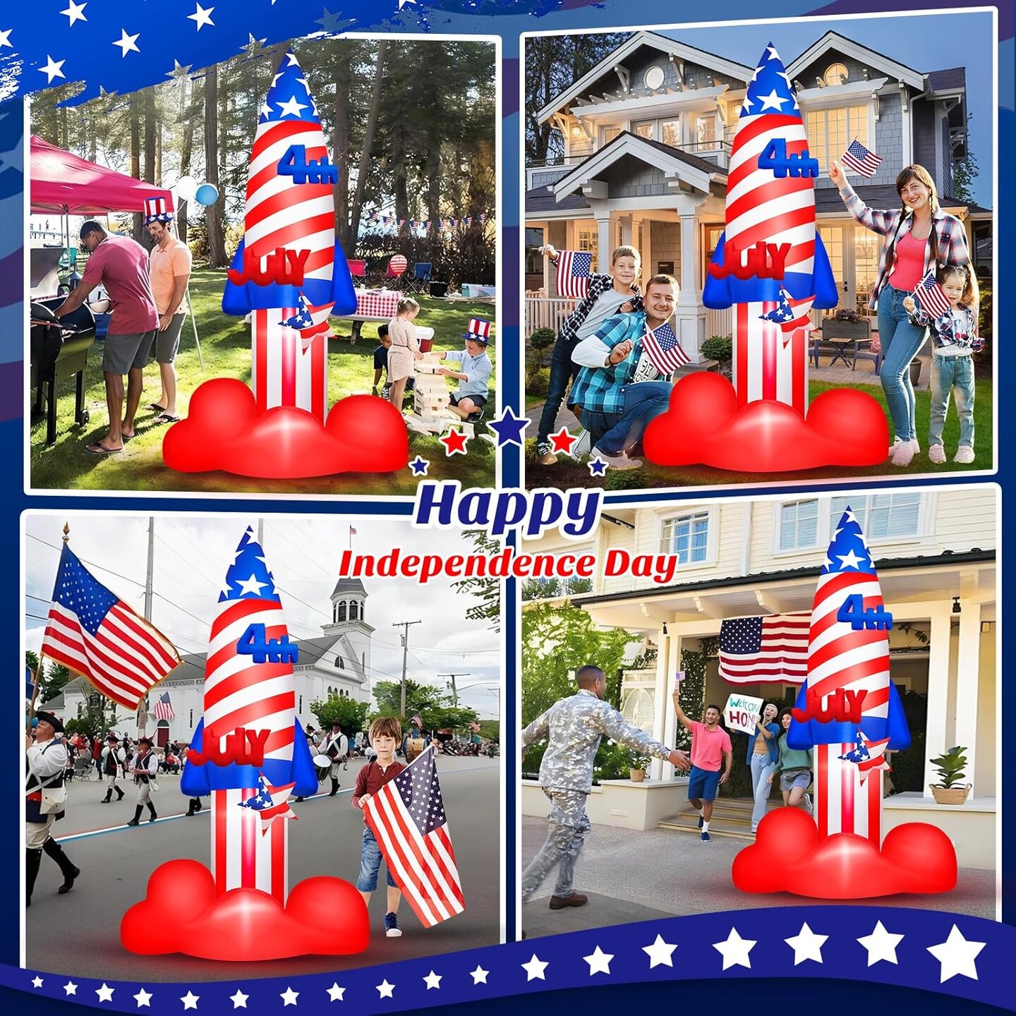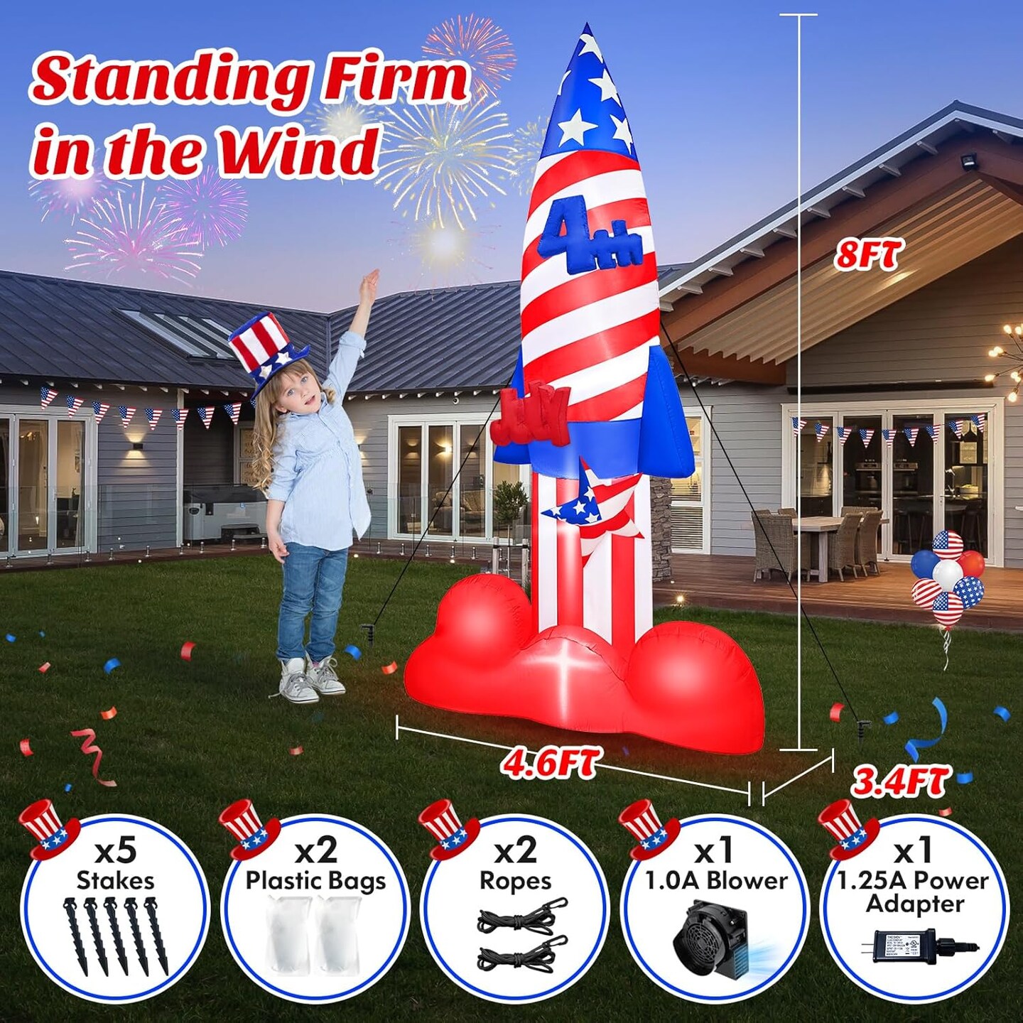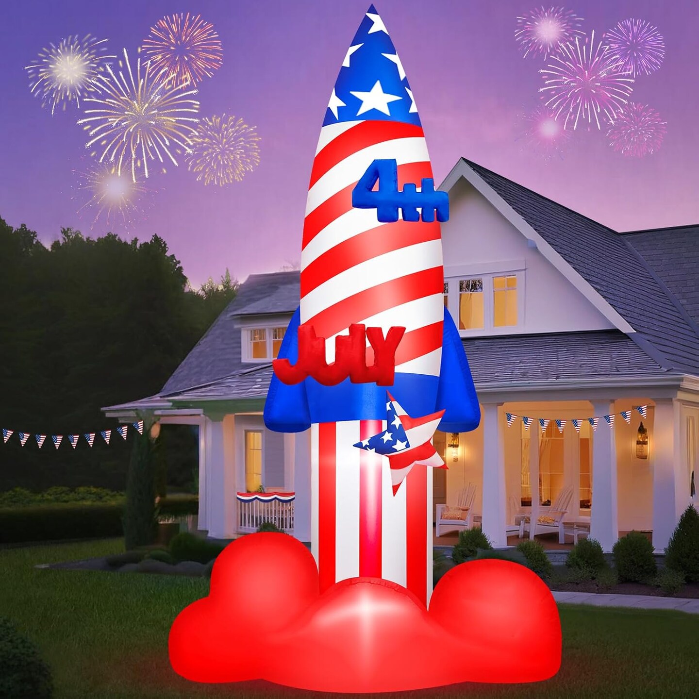 4th of July Inflatables 8 FT Large Rocket Outdoor Decorations with Built-in LEDs, Patriotic Memorial Independence Day Blow Up Inflatable for Parade Indoor Party Porch Lawn Garden Yard Decor