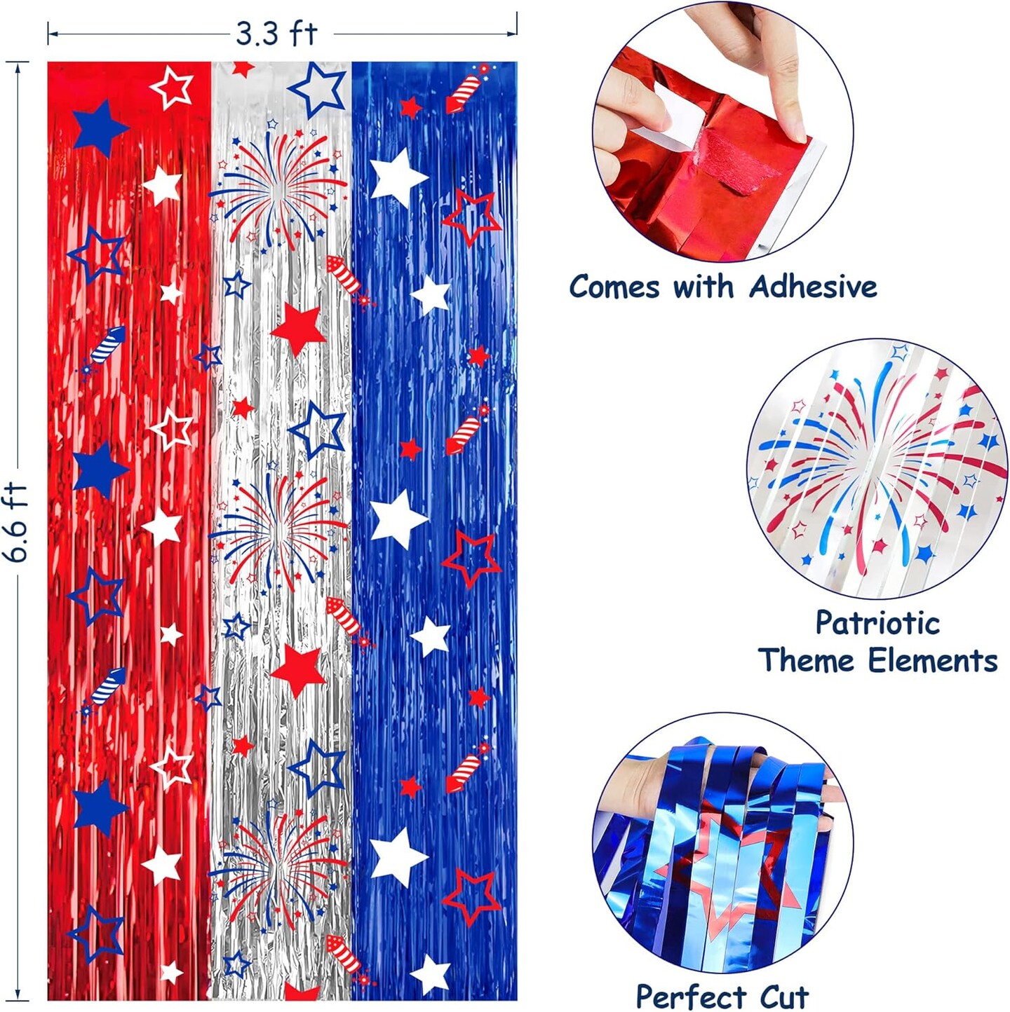 4th of July Party Decorations Red White Blue Foil Fringe Curtains, 2 Pack 3.3 x 6.6 FT Star Firework Patriotic Decor Fourth of July Photo Backdrop Streamers for Memorial Day Independence Day Labor Day