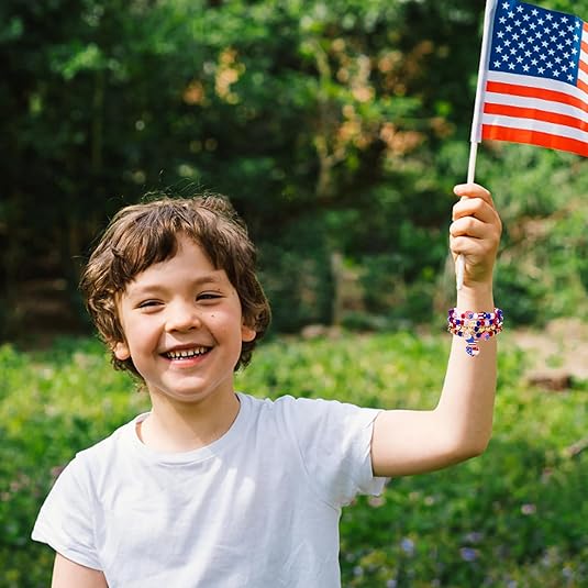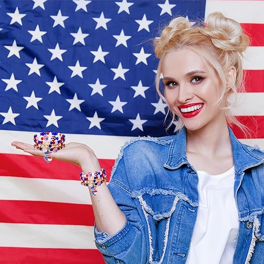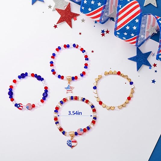 4th of July Patriotic Bracelets,Red White and Blue Beaded Stretch Bracelets