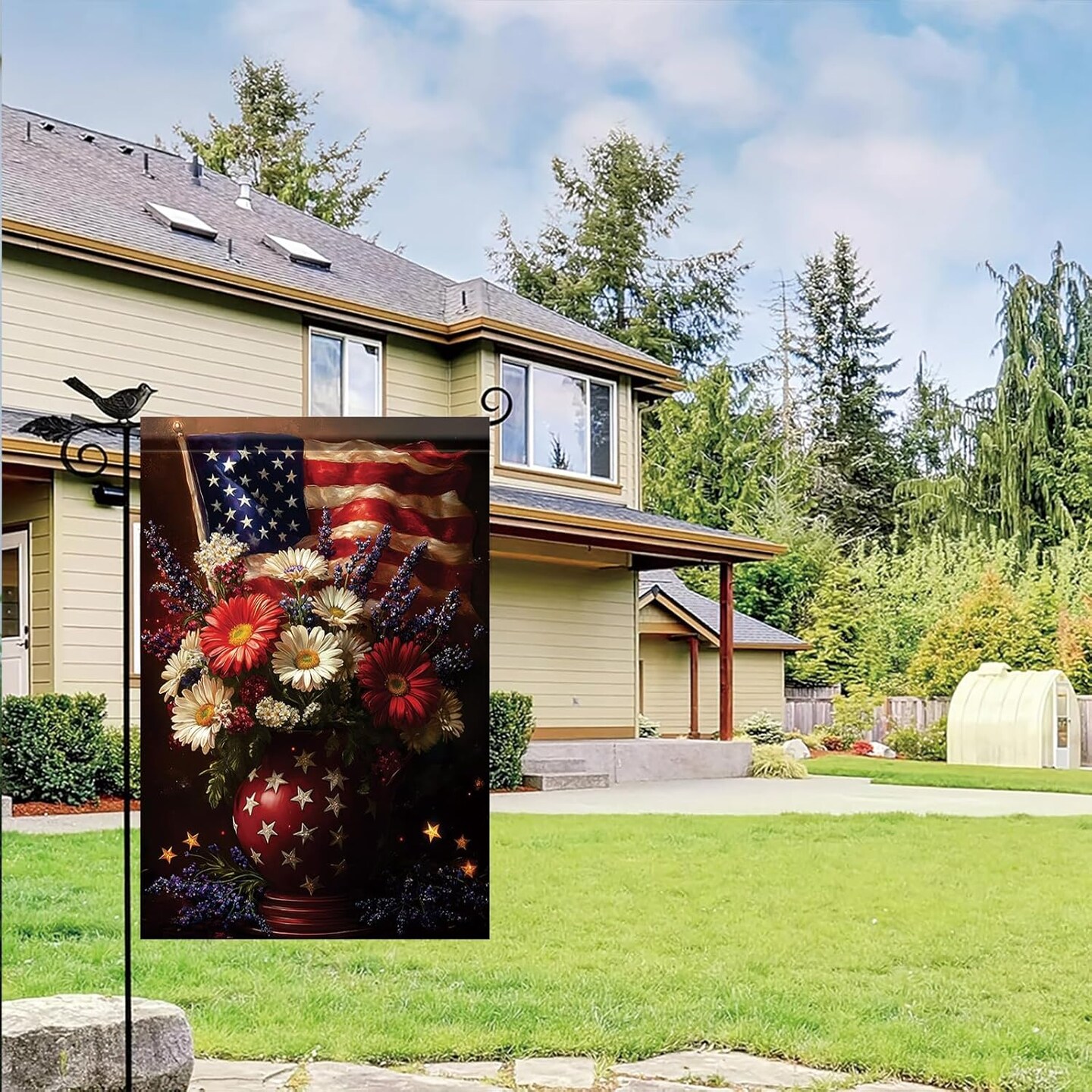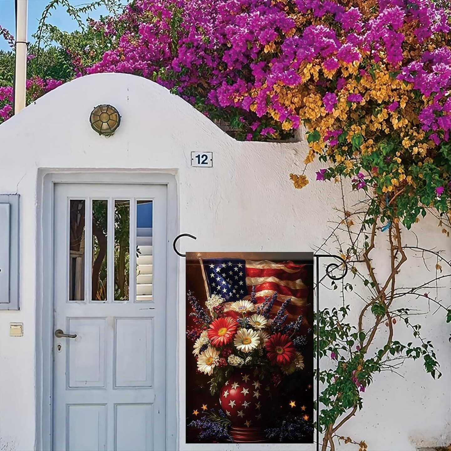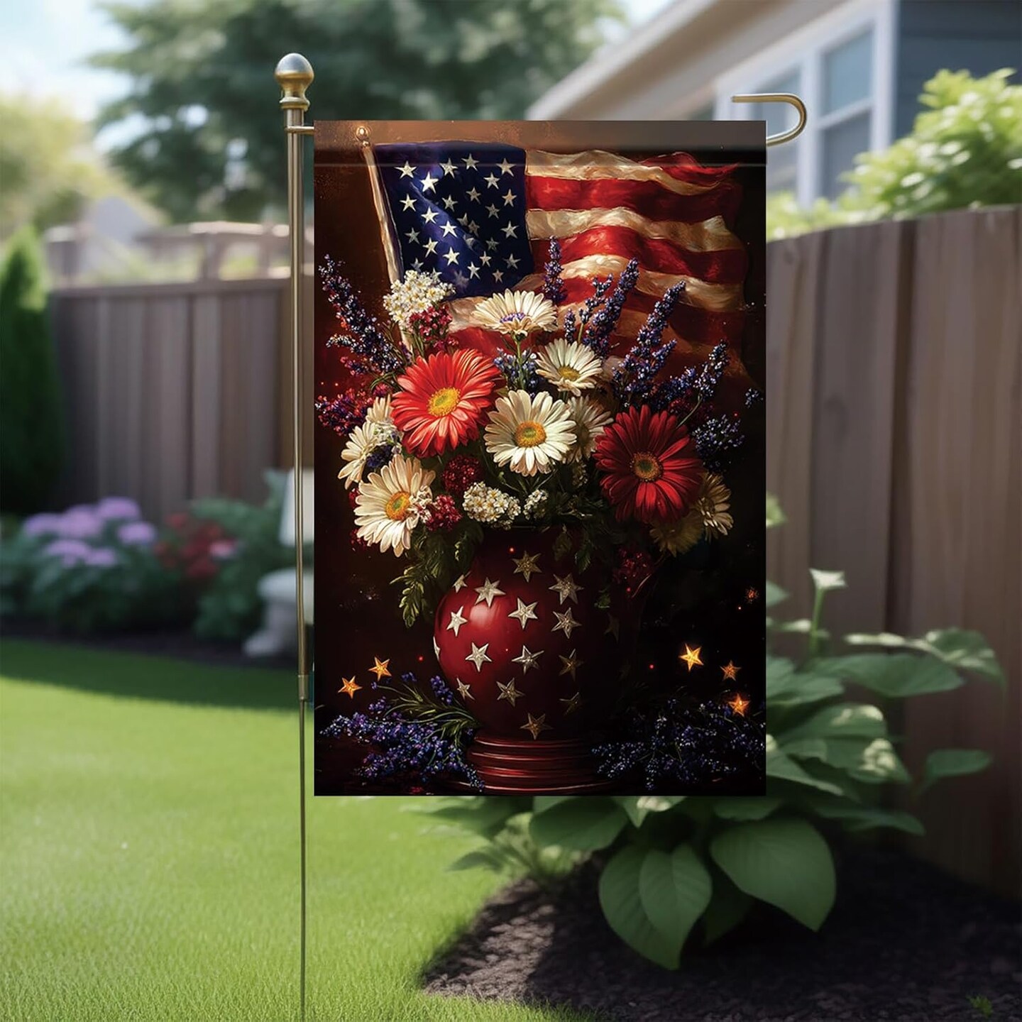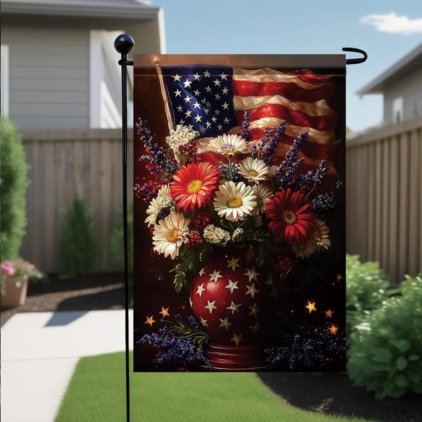 4th of July Patriotic Floral Garden Flag God Bless America 12x18 Inch Double Sided for Outside Summer Small Independence Day Yard Decorations