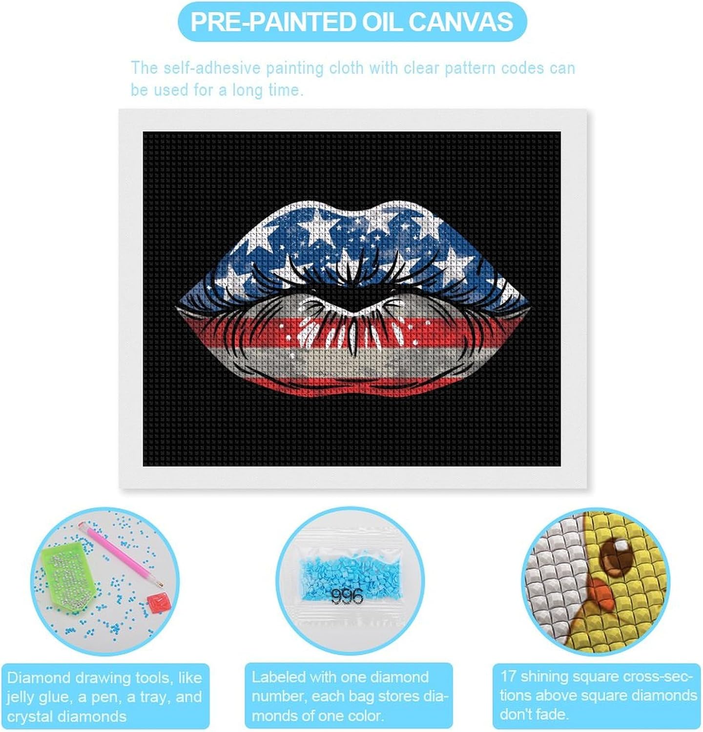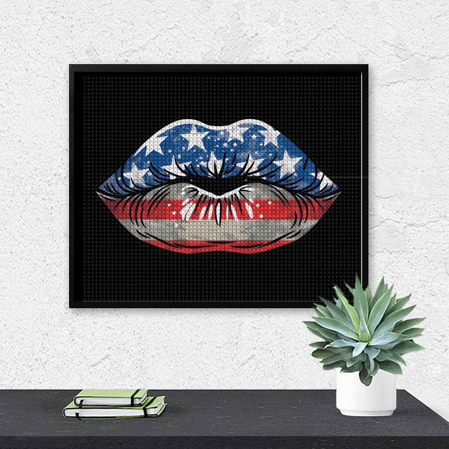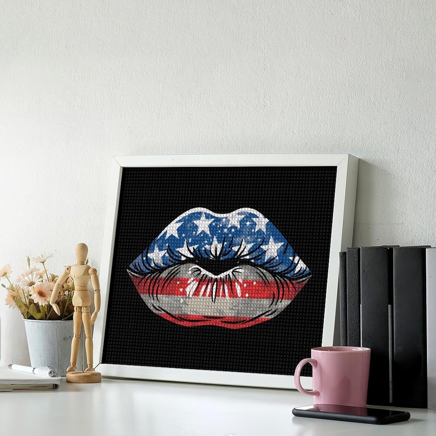 4th of July Patriotic Lips Printed Wall Diamond Art Painting Kits
