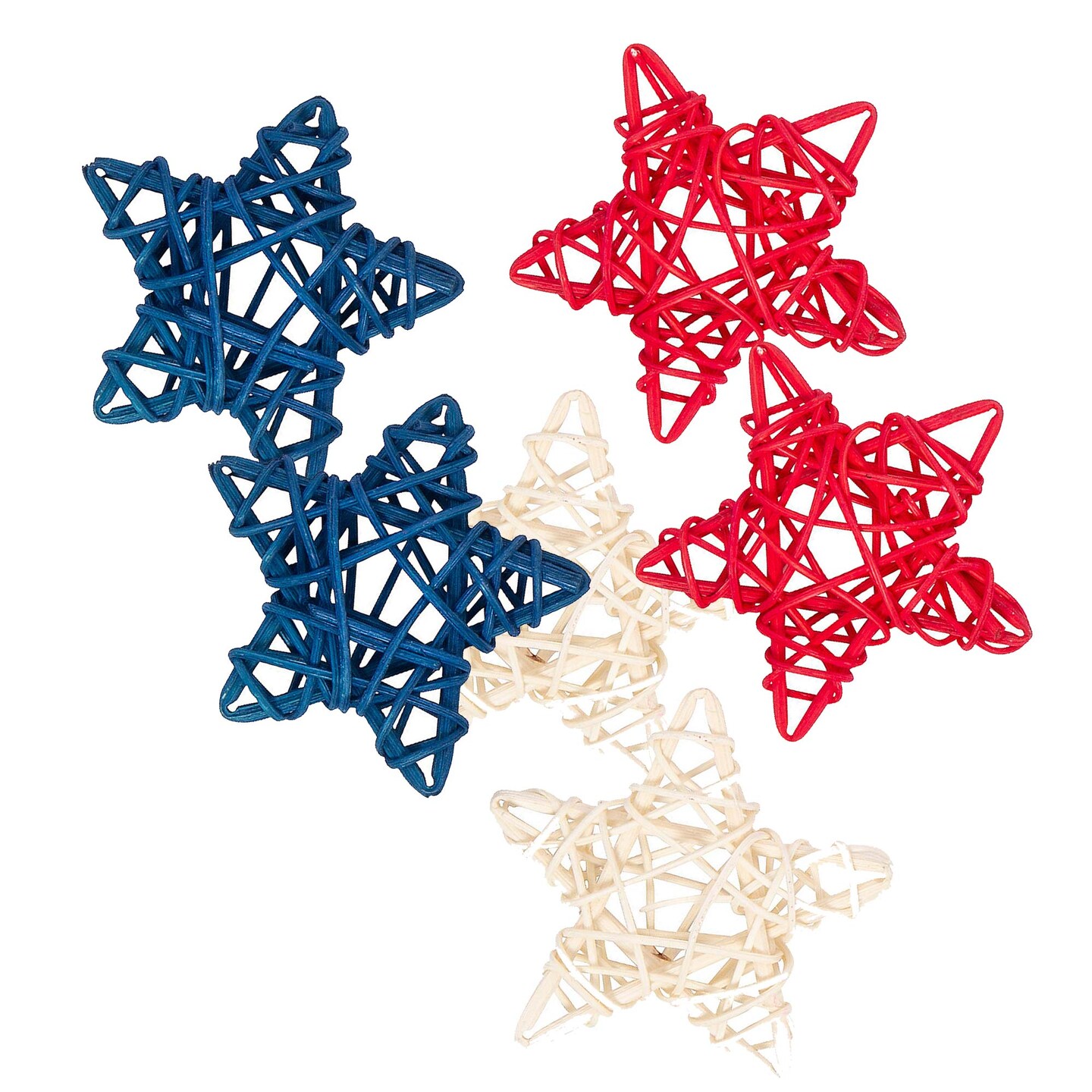 4th of July Patriotic Mini Rattan Stars 12 Pieces