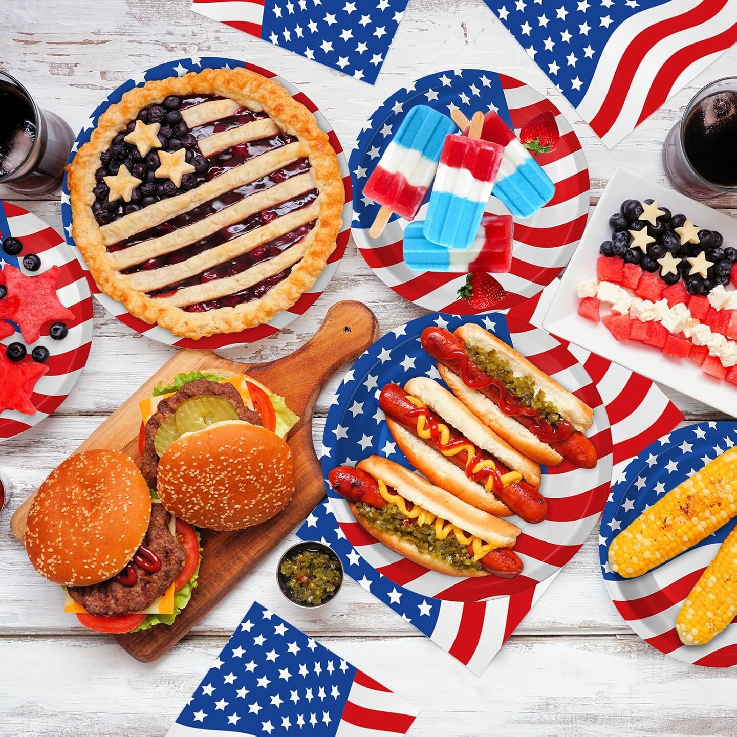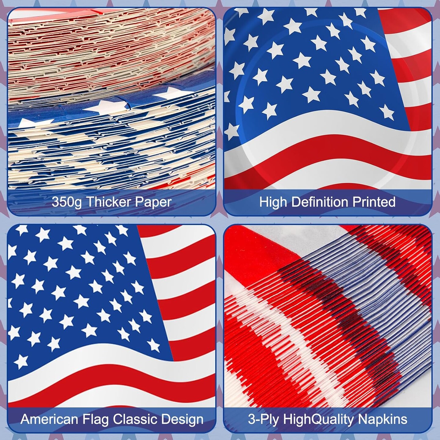 4th of July Plates & Napkins Party Set – Patriotic Disposable Tableware for 50 (American Flag)