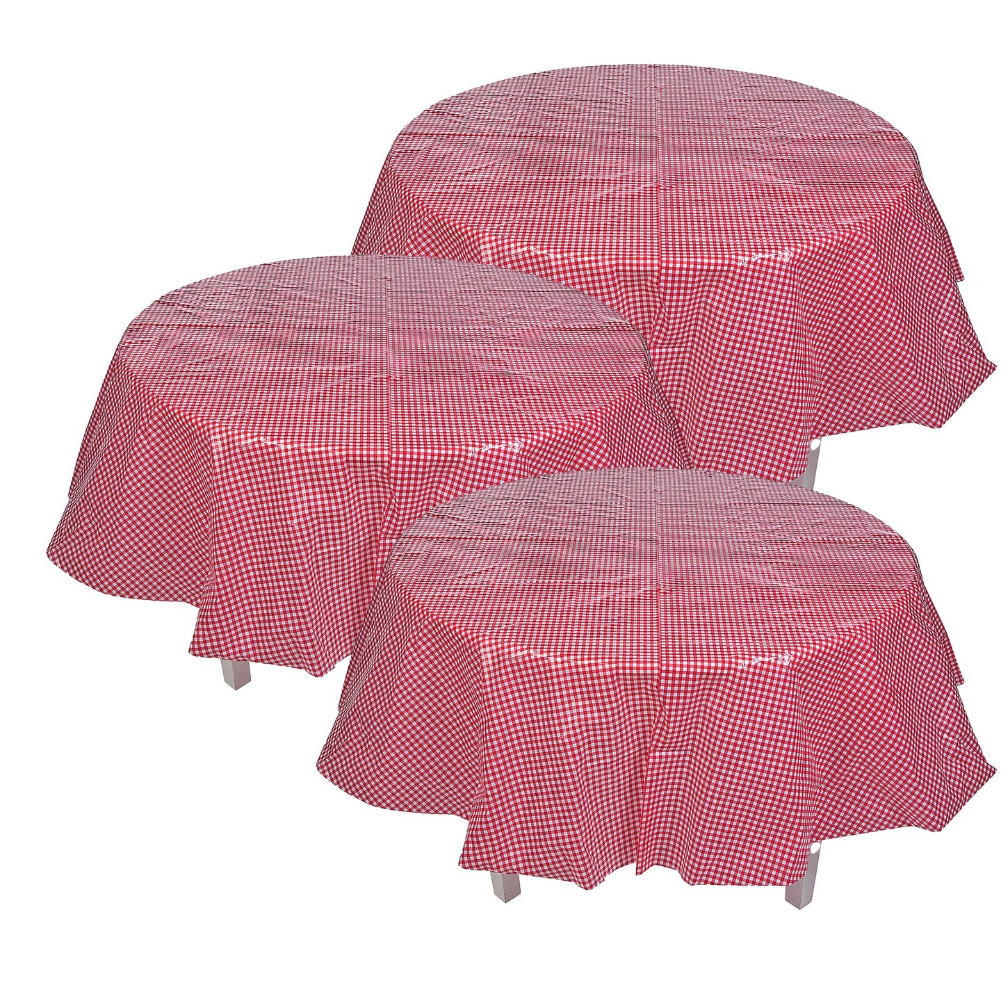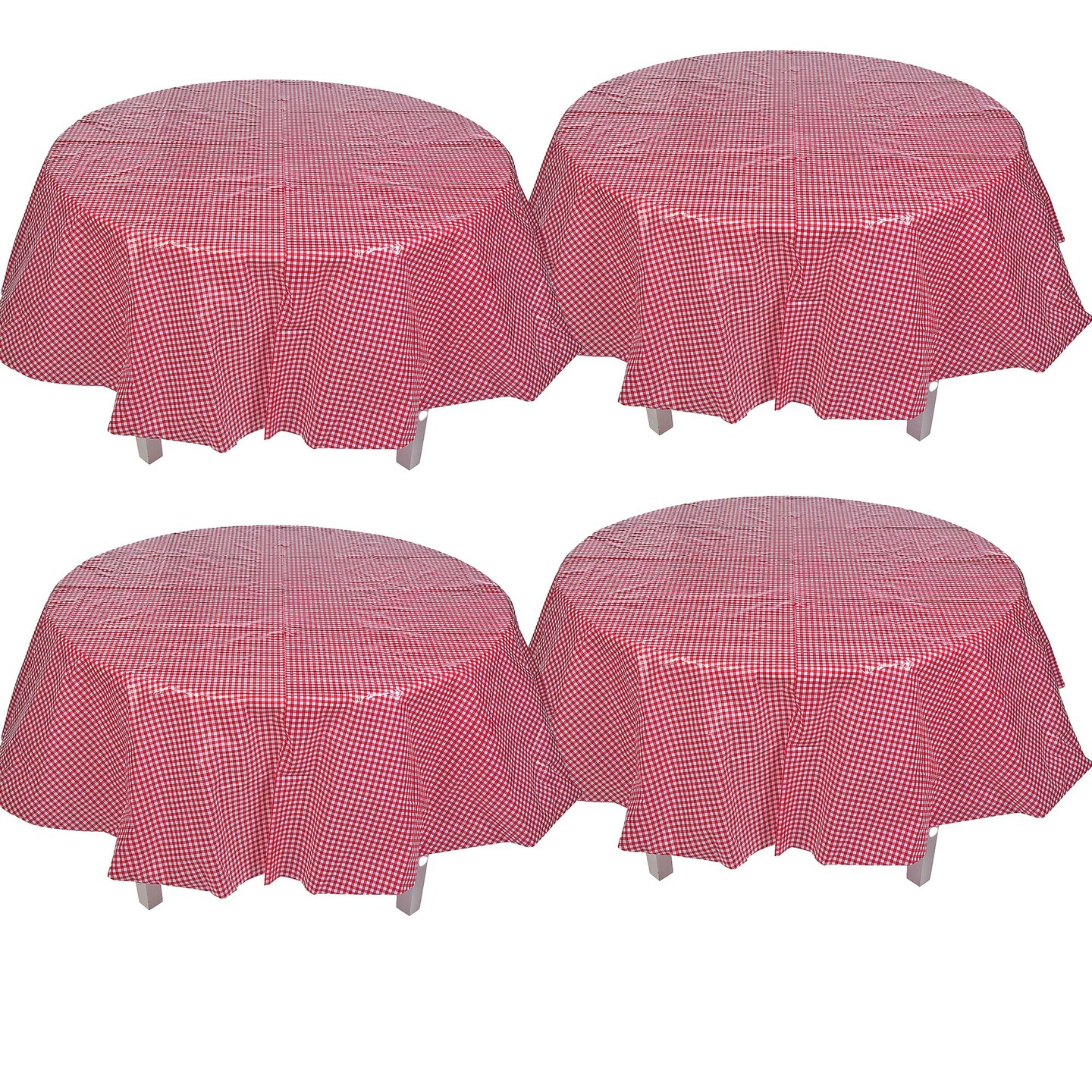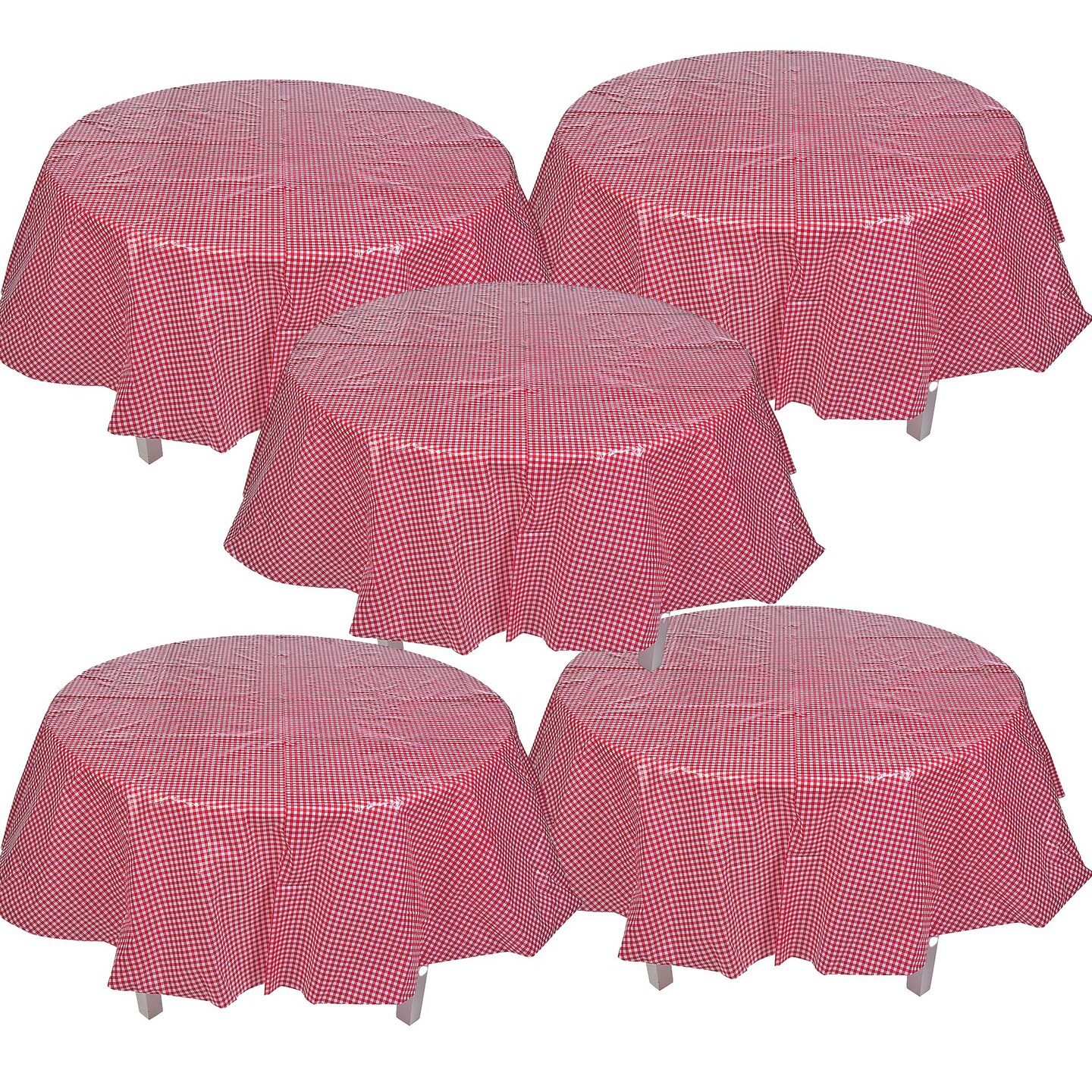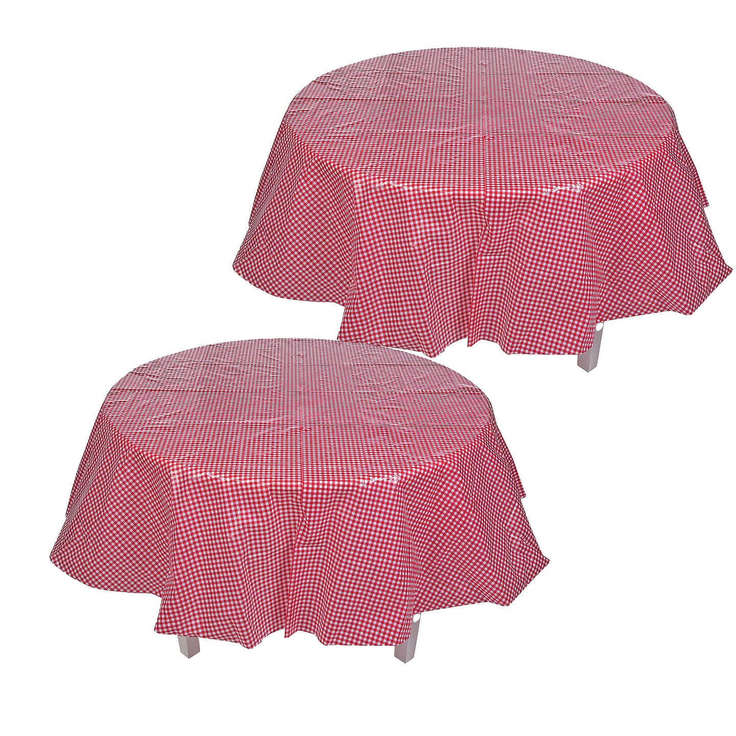 4th of July Red Gingham Round Plastic Tablecloth Party Decor 82"