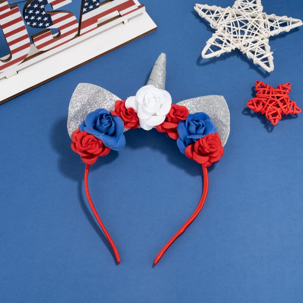 4th of July Rhinestone Star Headband for Women | Patriotic USA Red, White & Blue Independence Day Headwear