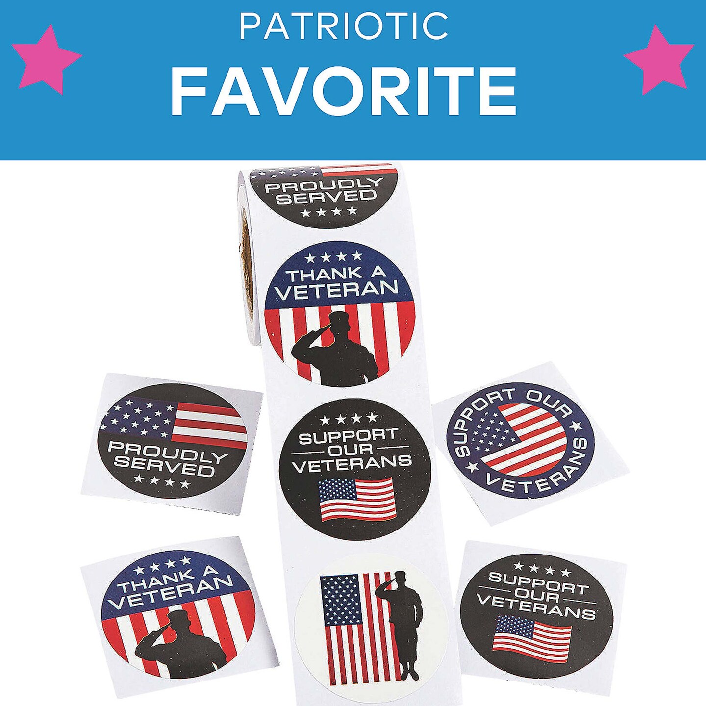 4th of July Veteran Support Patriotic Paper Stickers 1 1/2" 100 Ct.